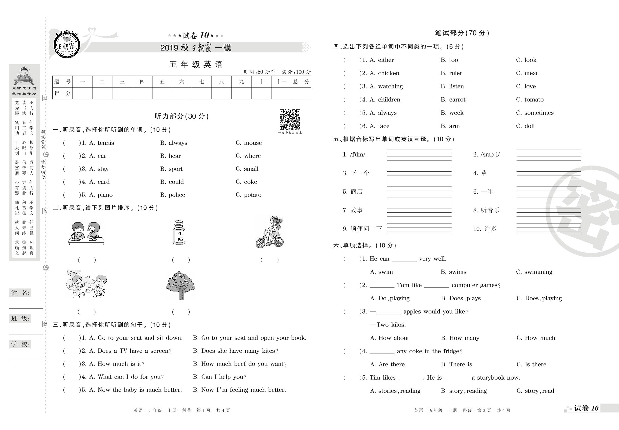 王朝霞期末模拟卷五年级上册英语(科普版)_R210807143620【10】