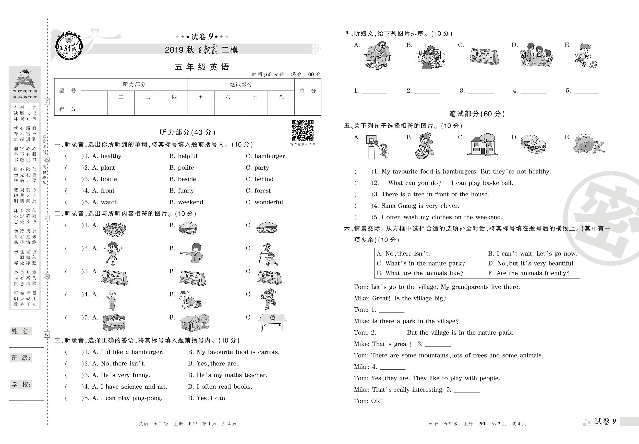 王朝霞期末模拟卷五年级上册英语(PEP版)_R210807143727【9】