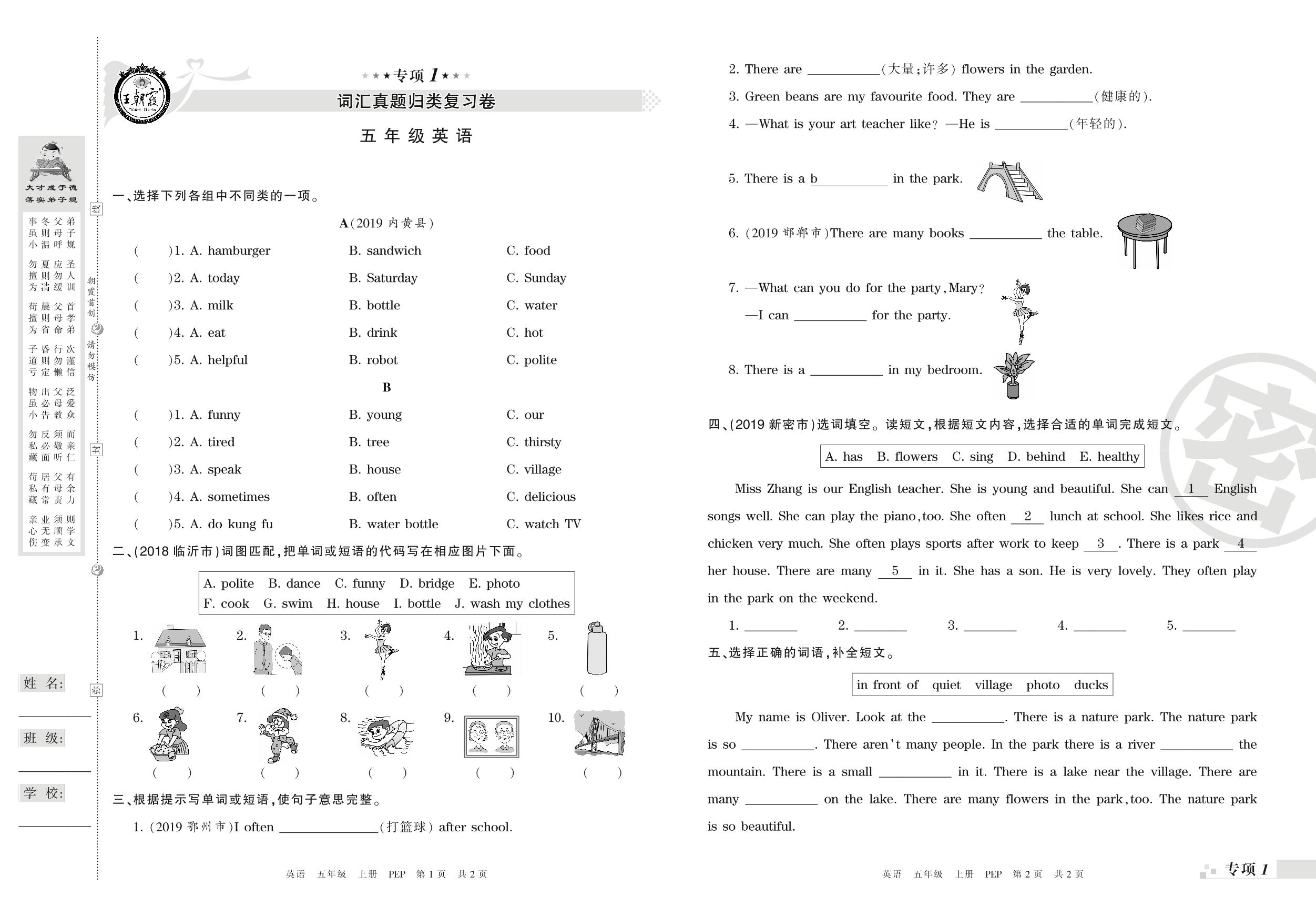 王朝霞期末专项卷——词汇、句子真题归类复习五年级上册英语(PEP版)_R210807143739【0】