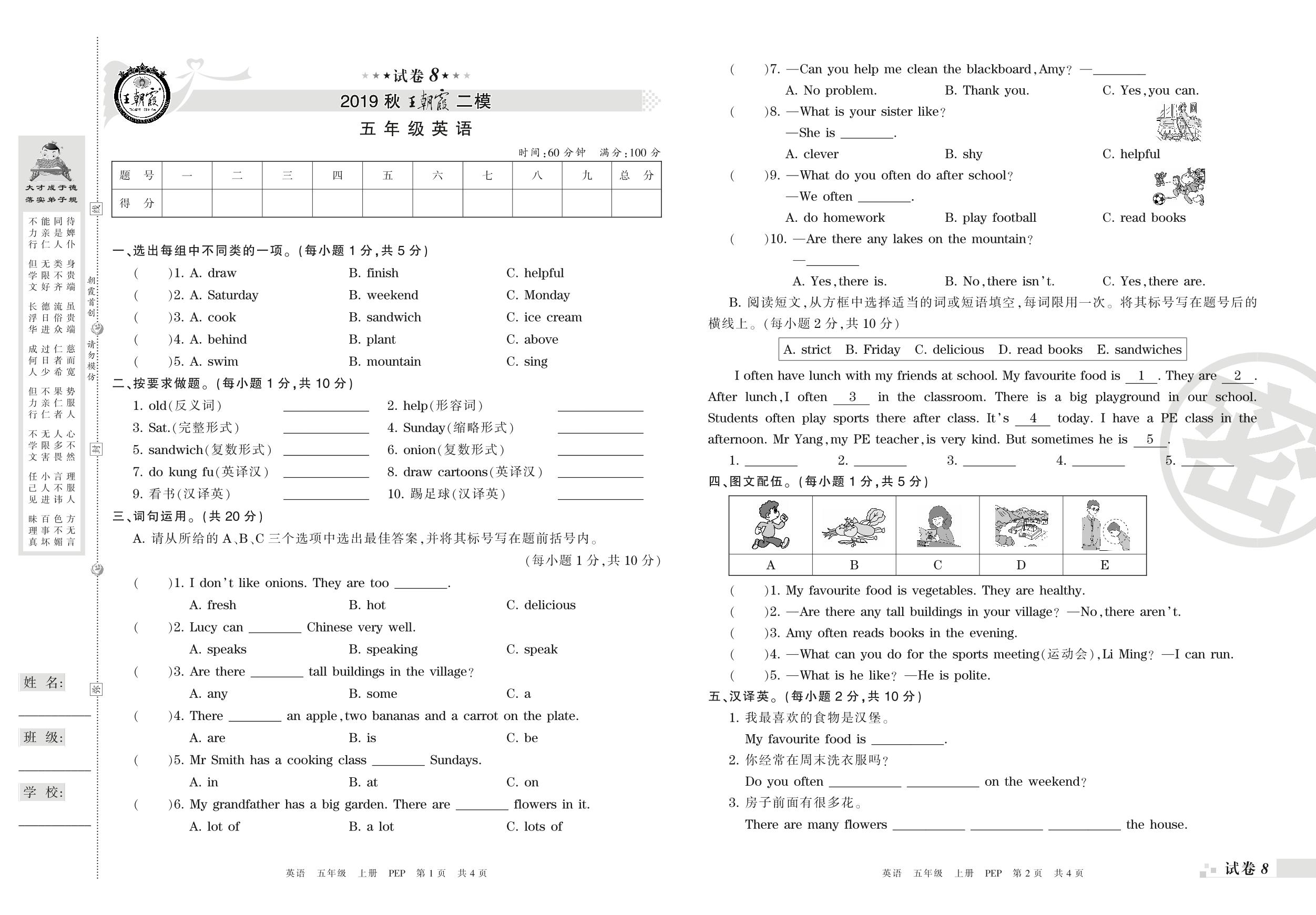 王朝霞期末模拟卷五年级上册英语(PEP版)_R210807143825【8】