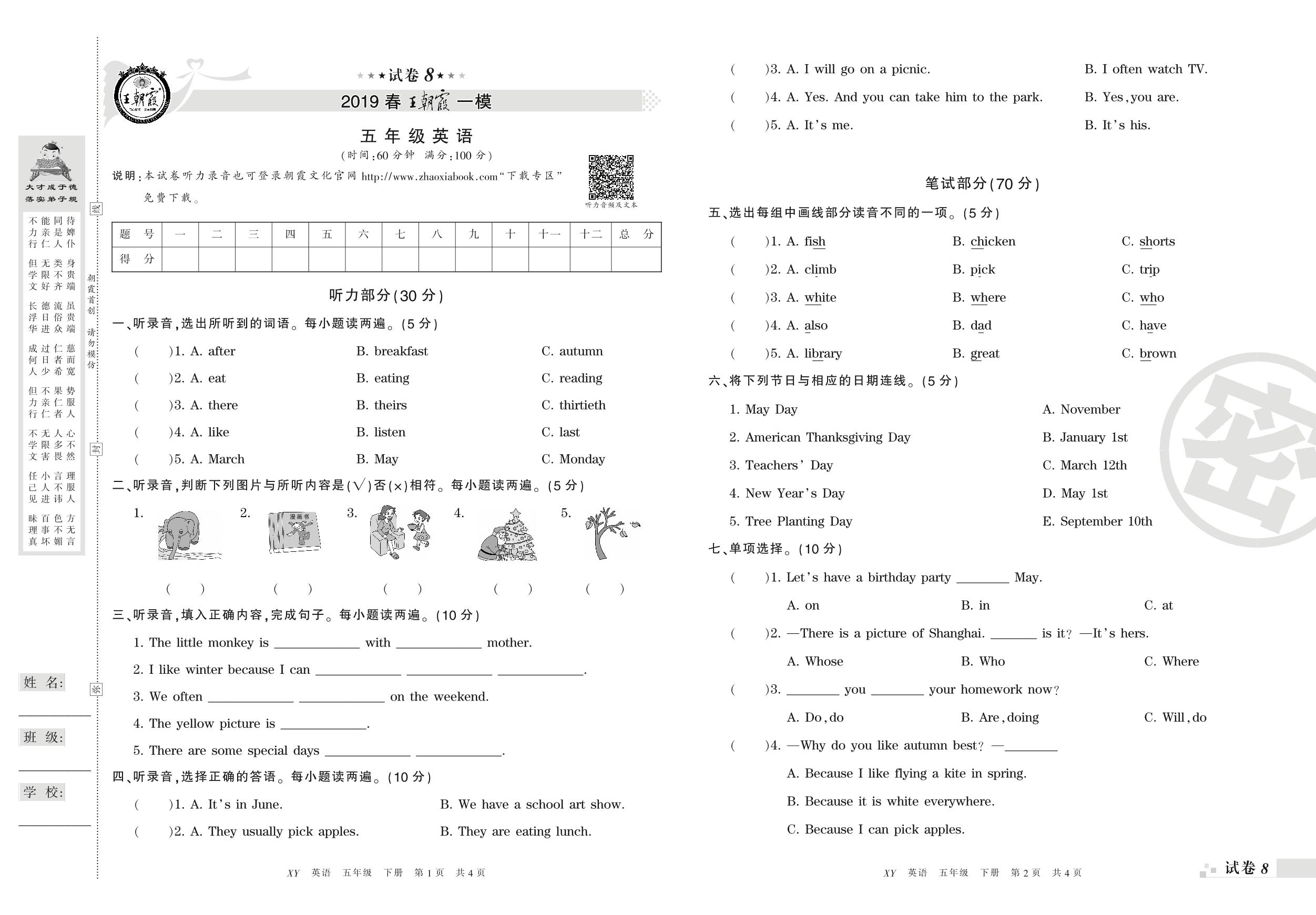 王朝霞期末模拟卷五年级下册英语(PEP版)_R210807144124【8】