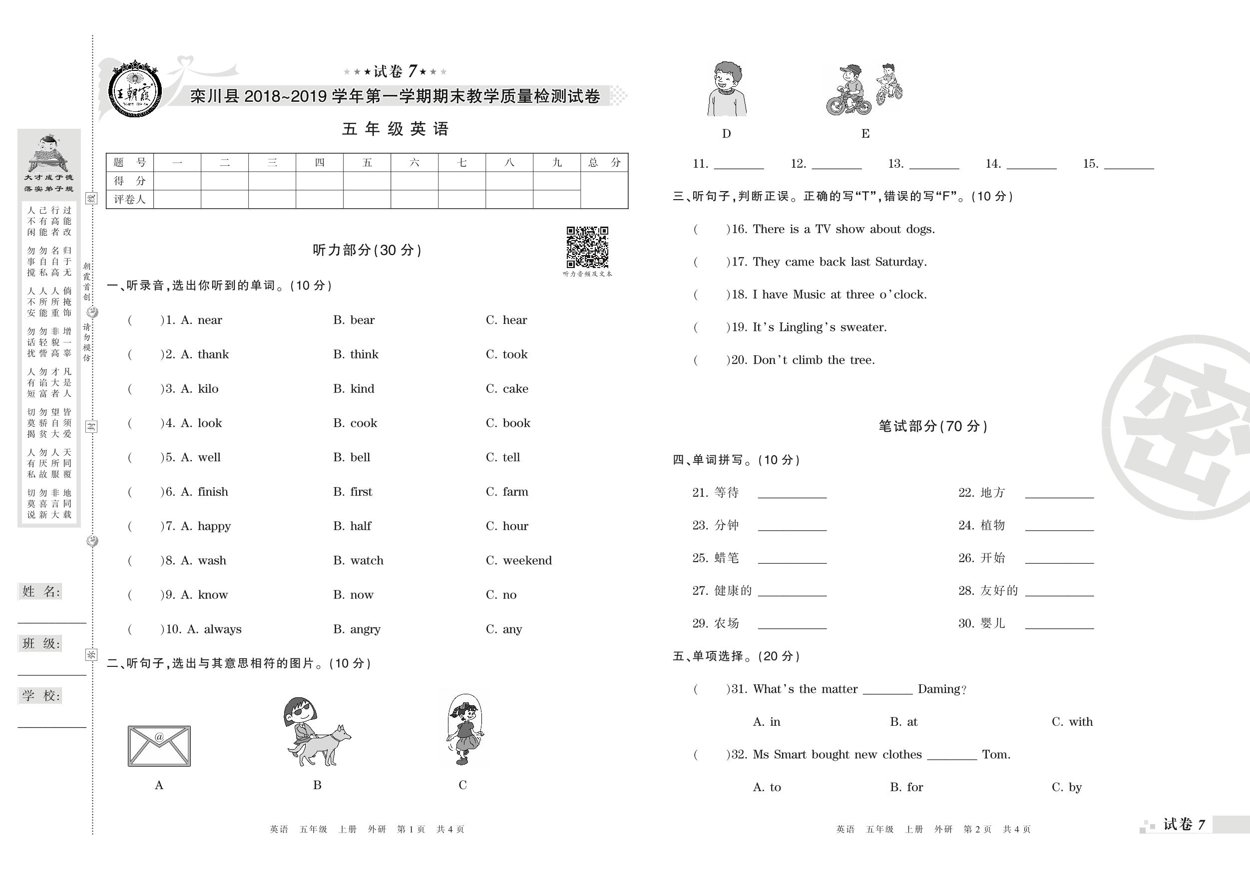 2018-2019学年第一学期洛阳市栾川县五年级英语试卷(外研版)【7】
