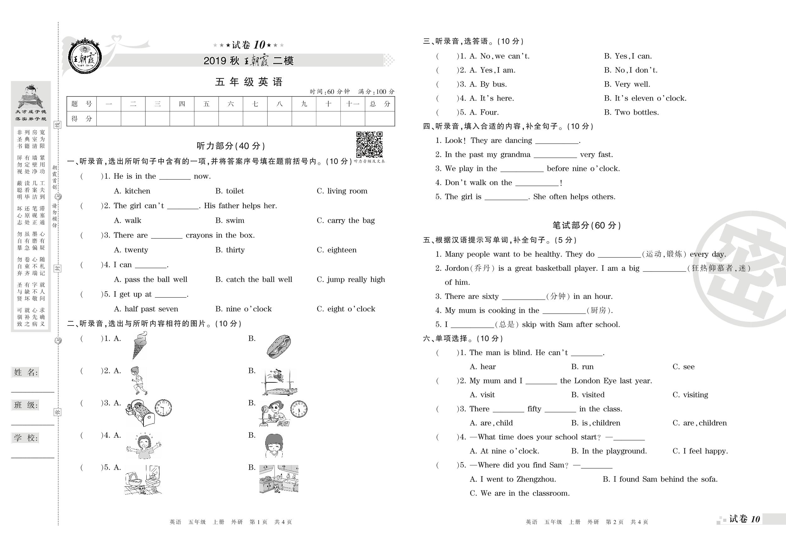 王朝霞期末模拟卷五年级上册英语(外研版)_R210807144214【10】