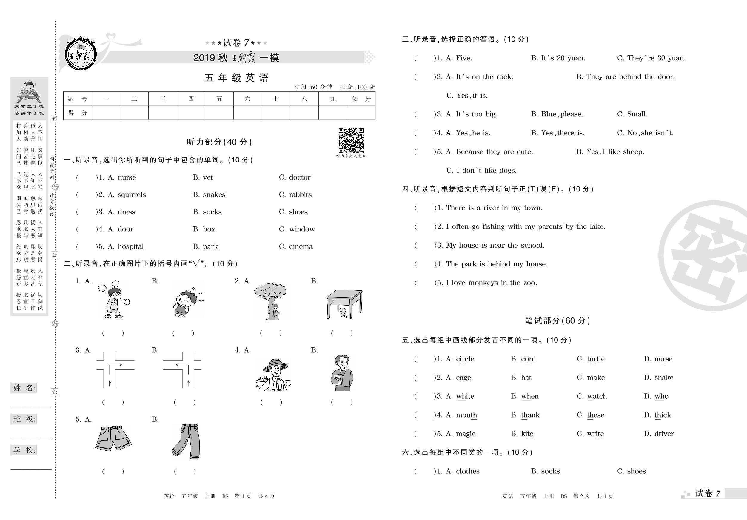王朝霞期末模拟卷五年级上册英语(北师版)_R210807144244【7】