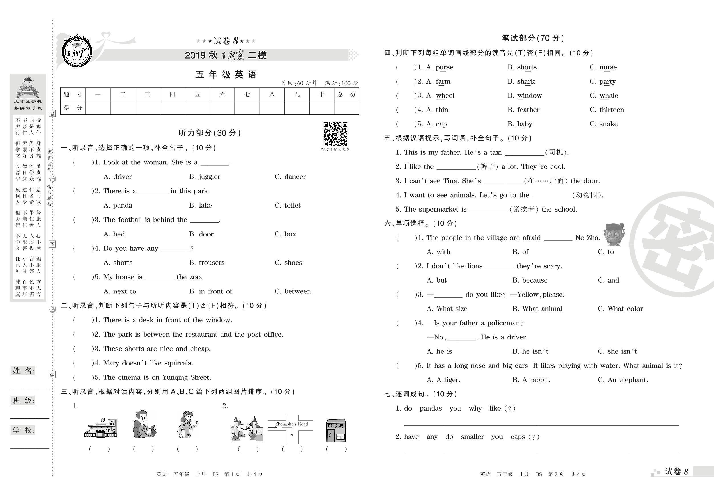 王朝霞期末模拟卷五年级上册英语(北师版)_R210807144247【8】
