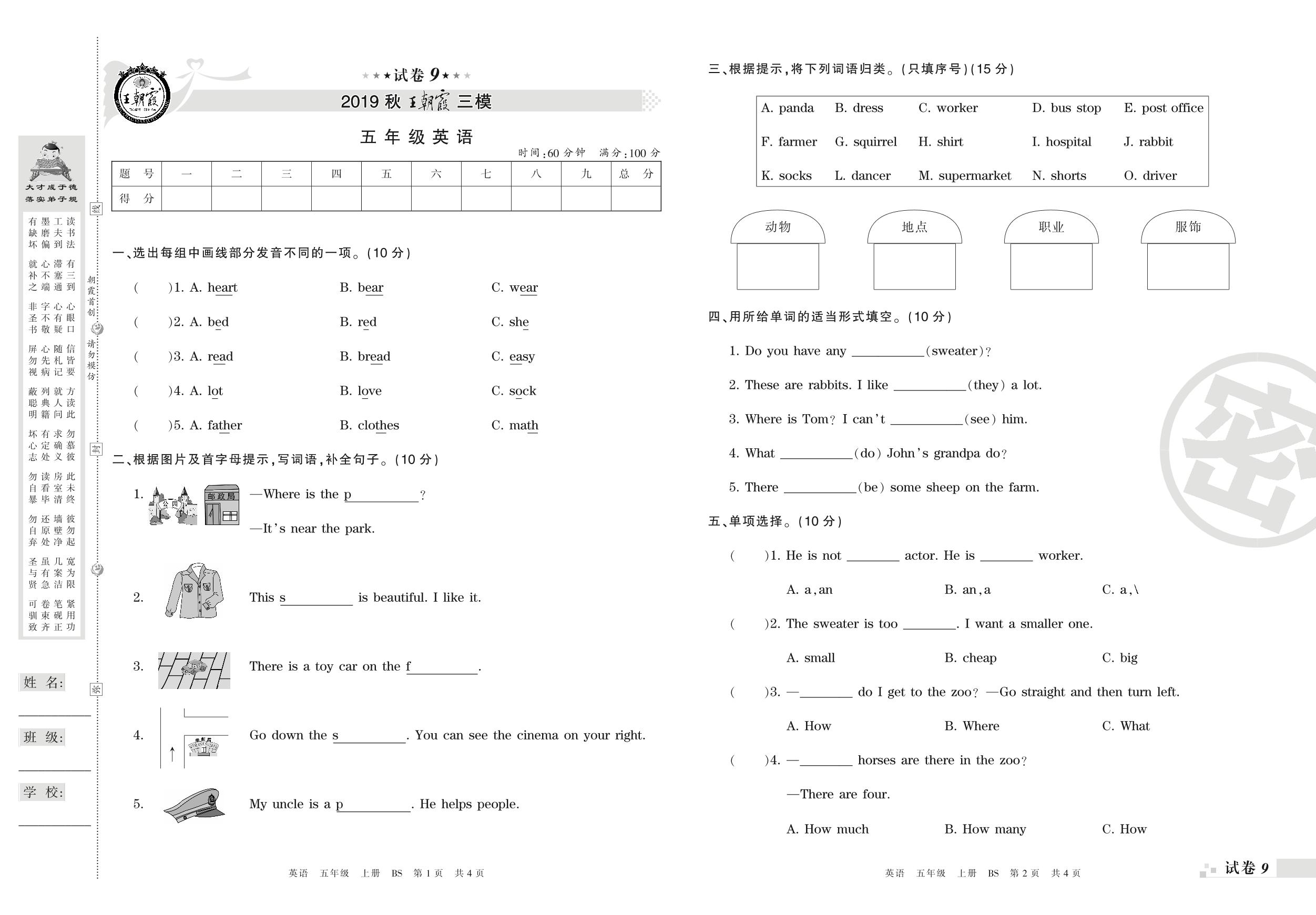 王朝霞期末模拟卷五年级上册英语(北师版)_R210807144250【9】