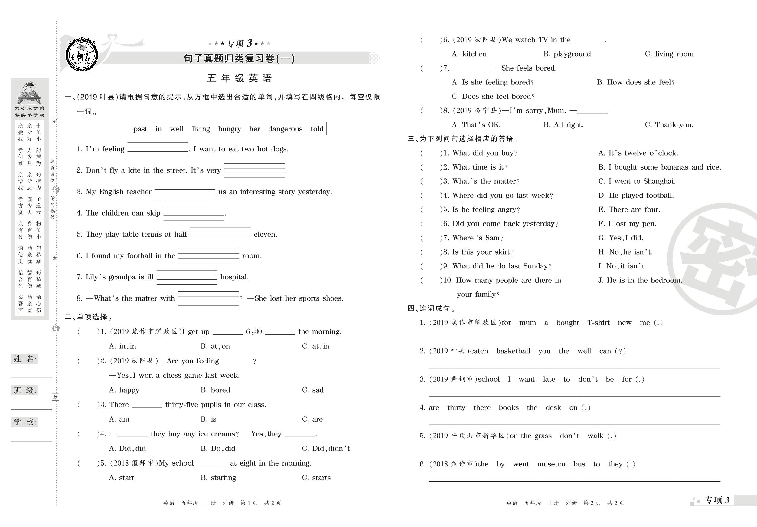 王朝霞期末专项卷——句子真题归类复习五年级上册英语(外研版)_R210807144437【0】