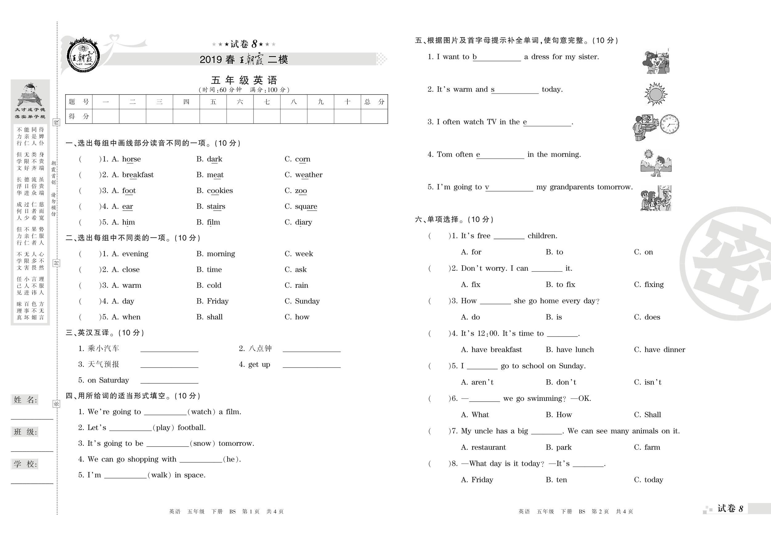 王朝霞期末模拟卷五年级下册英语(北师版)_R210807144612【8】