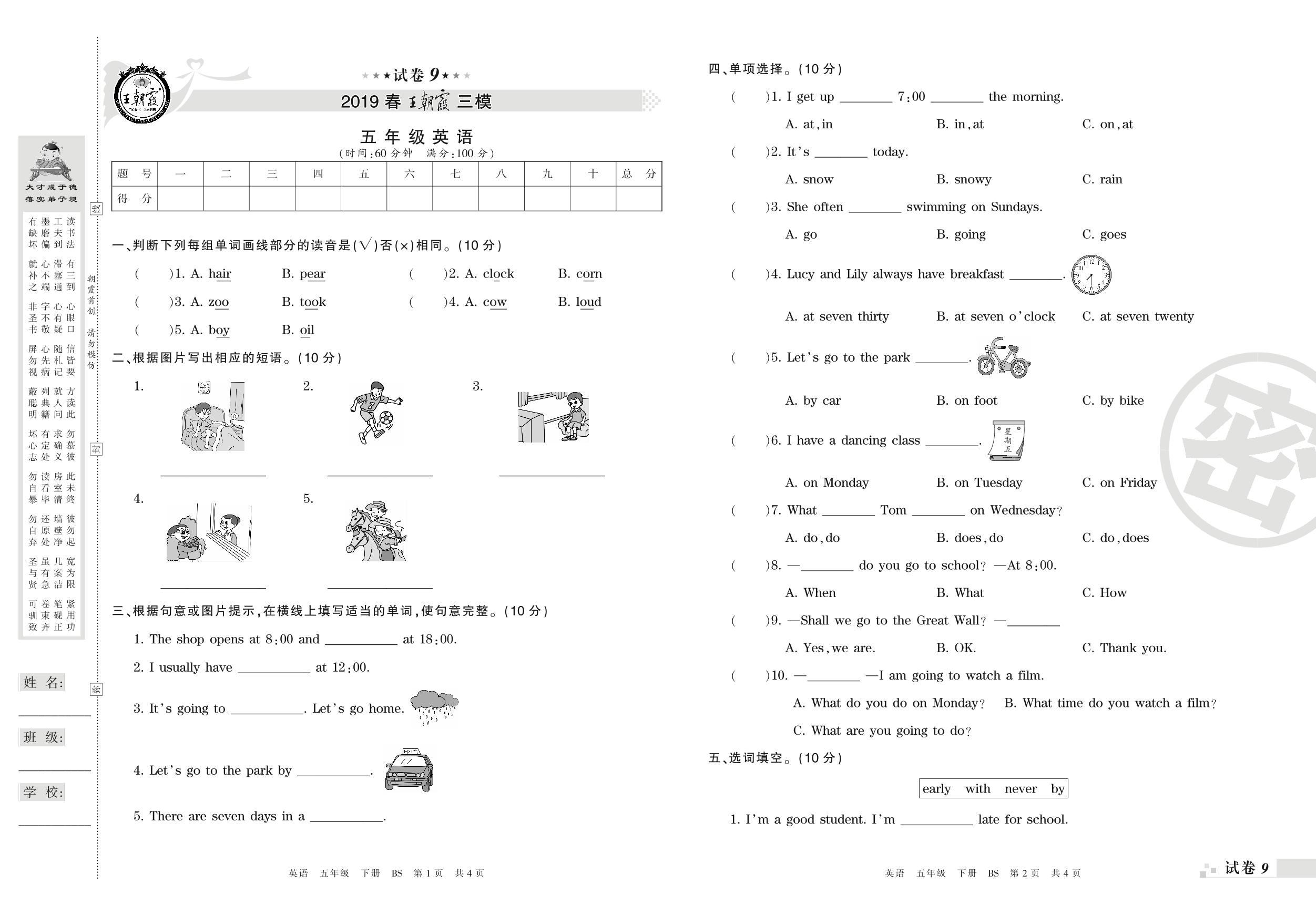 王朝霞期末模拟卷五年级下册英语(北师版)_R210807144615【9】