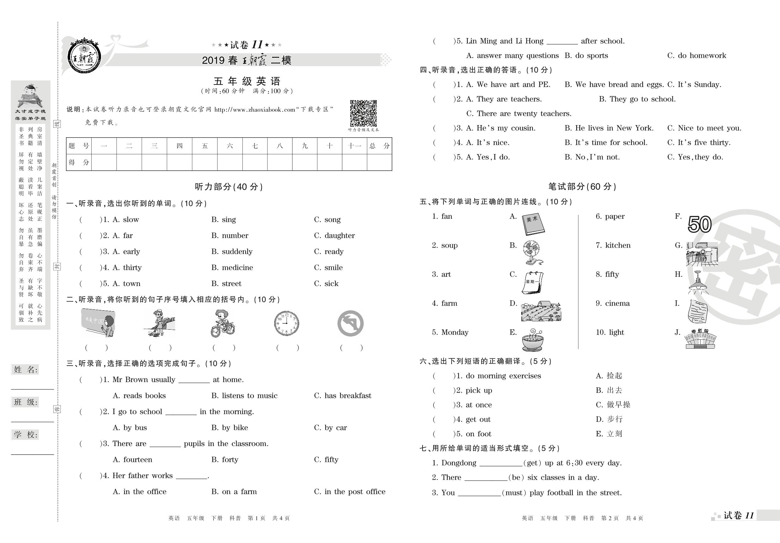 王朝霞期末模拟卷五年级下册英语(科普版)_R210807144831【11】