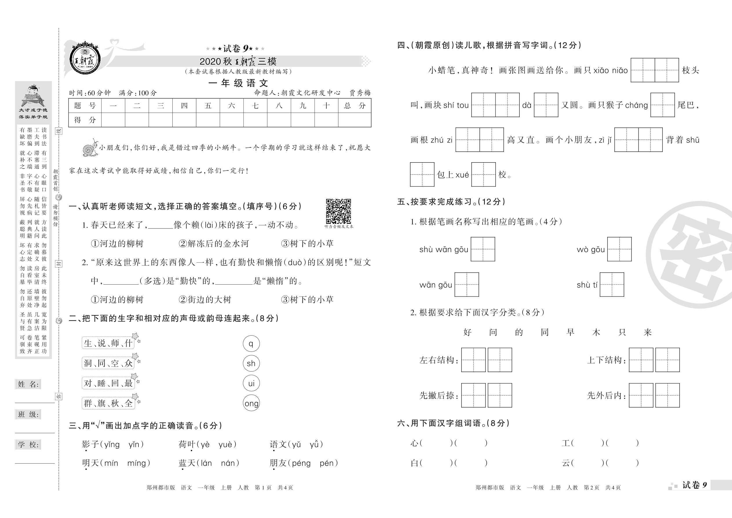 王朝霞期末模拟卷一年级上册语文(人教版)_R210731175320【9】