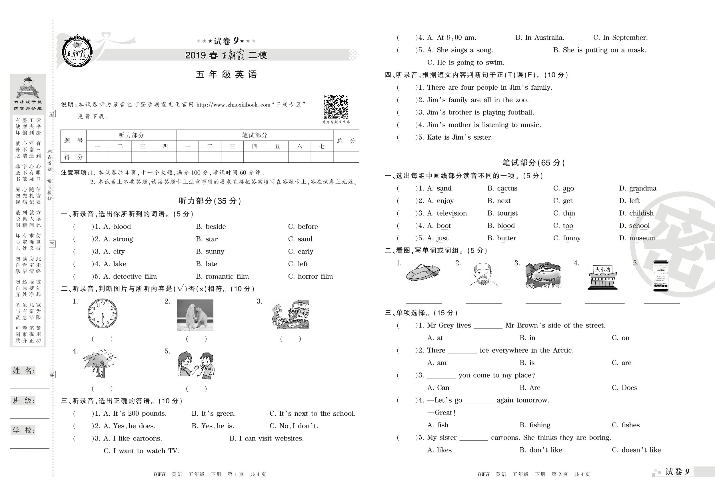 王朝霞期末模拟卷五年级下册英语(剑桥版)_R210807145033【9】