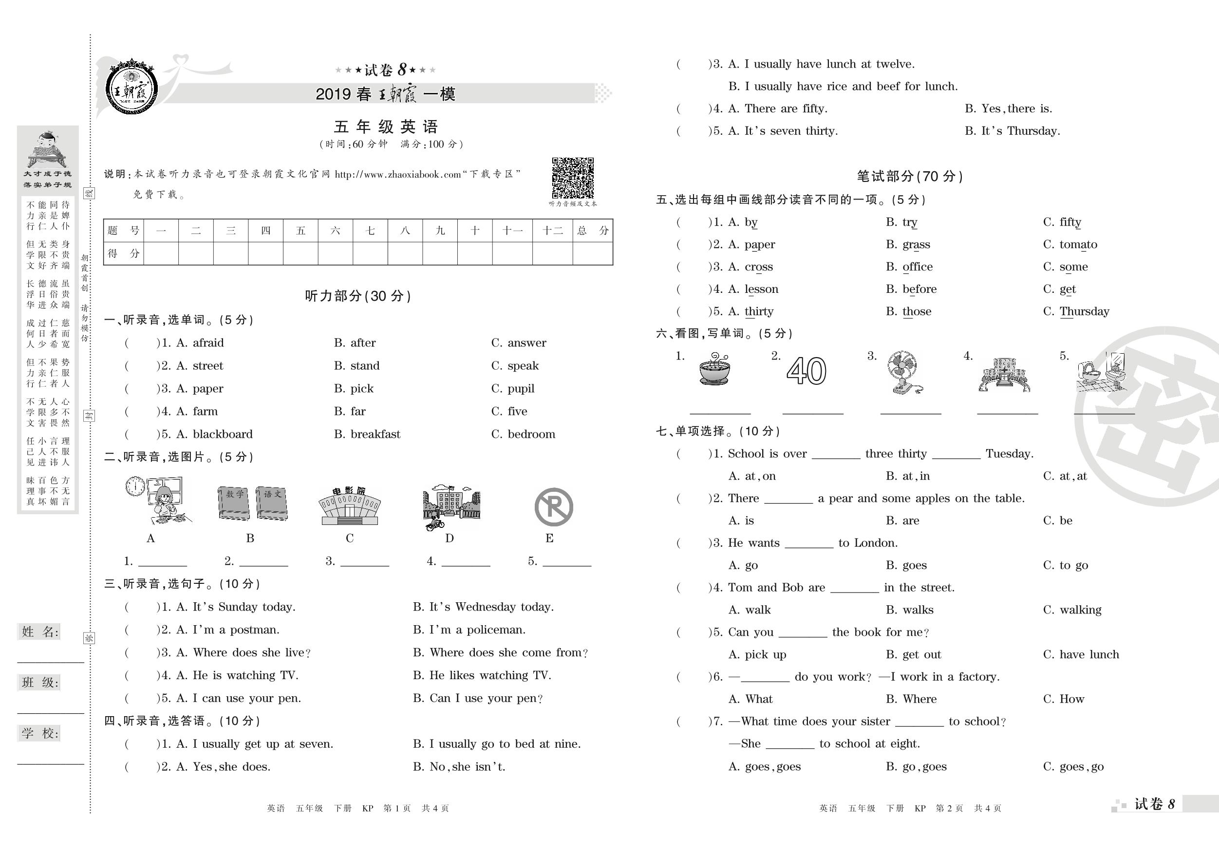 王朝霞期末模拟卷五年级下册英语(科普版)_R210807145118【8】