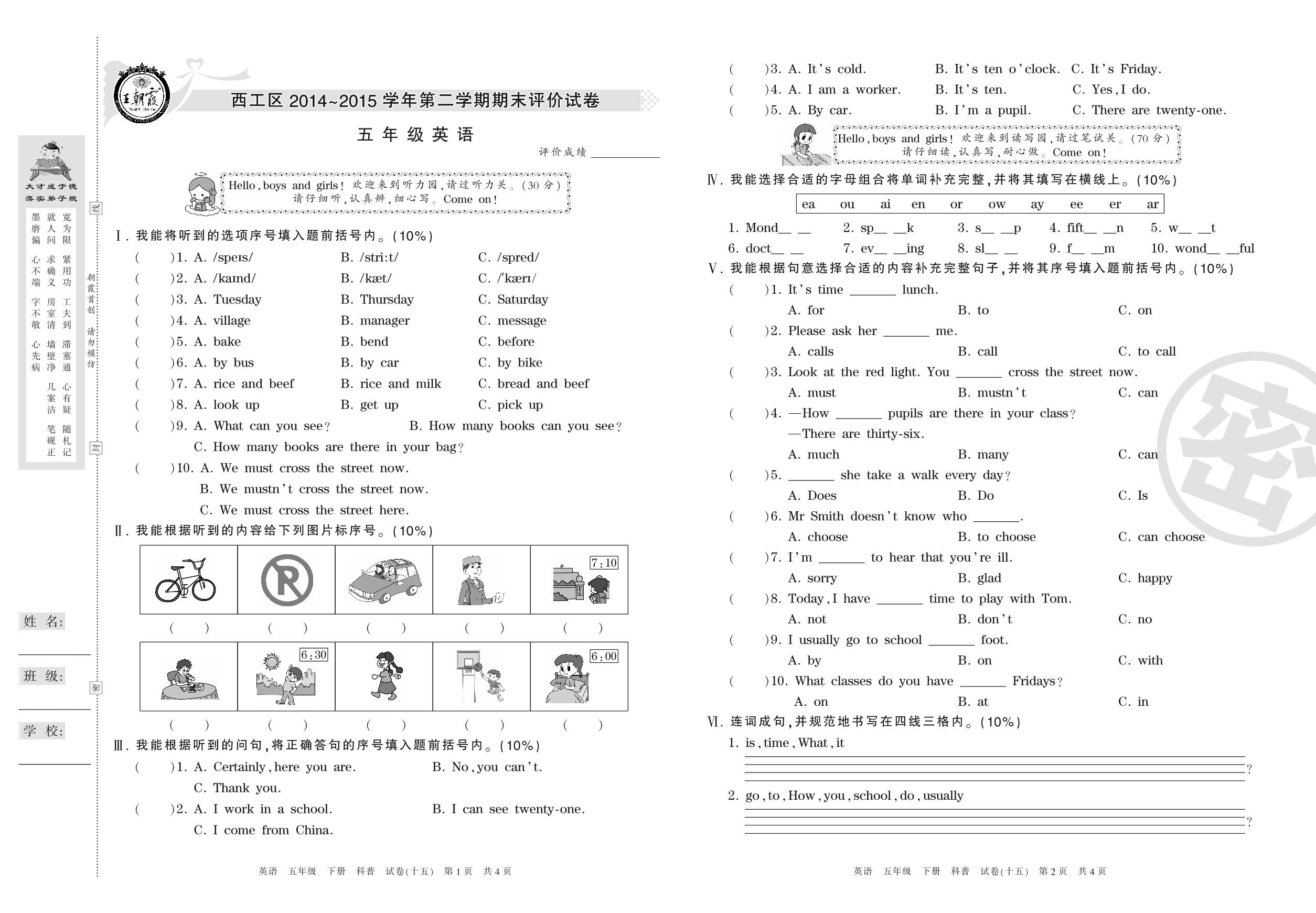 2014-2015学年第二学期洛阳市涧西区五年级英语试卷(科普版)【15】