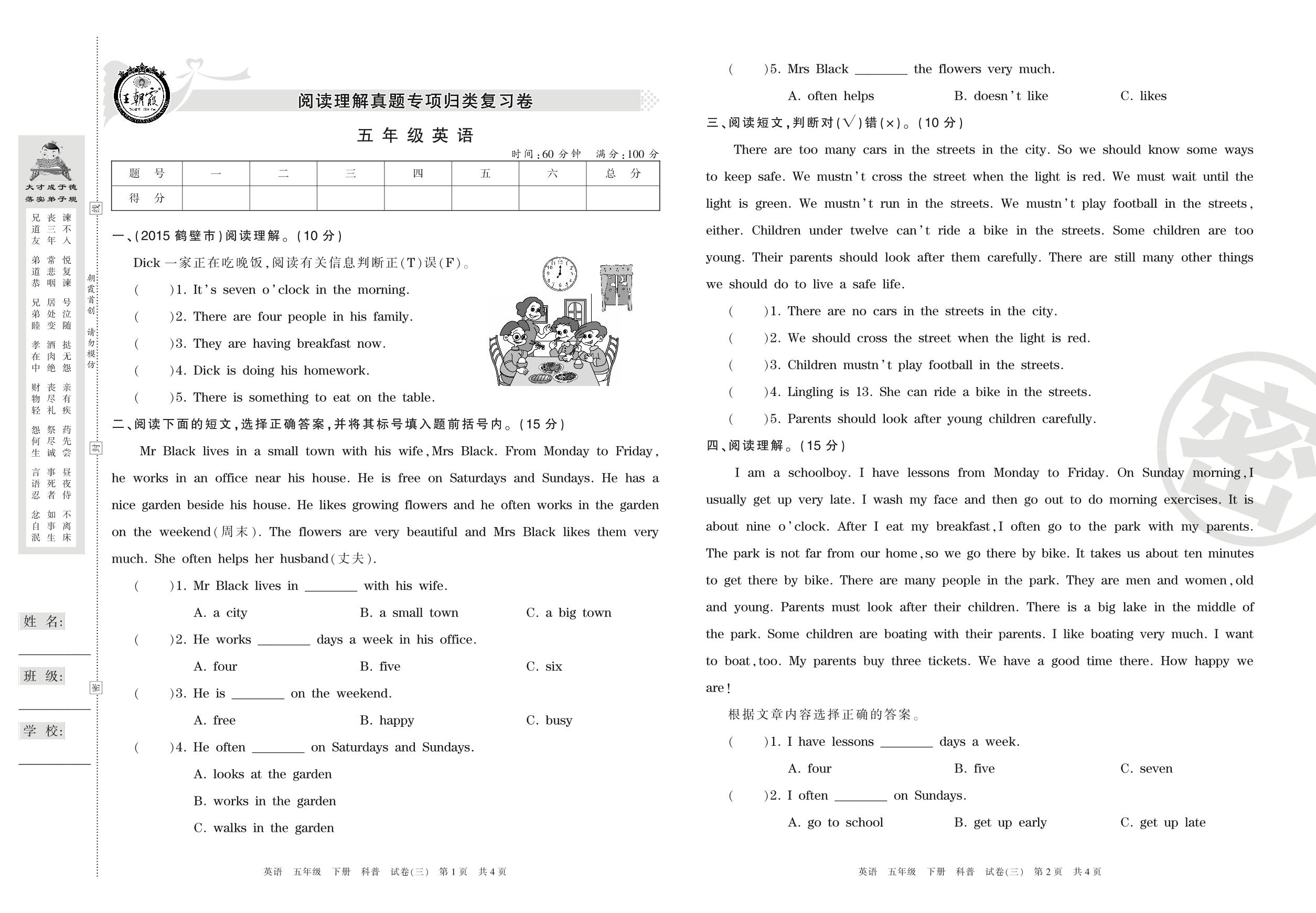 王朝霞期末专项卷五年级下册英语(科普版)_R210807145216【3】