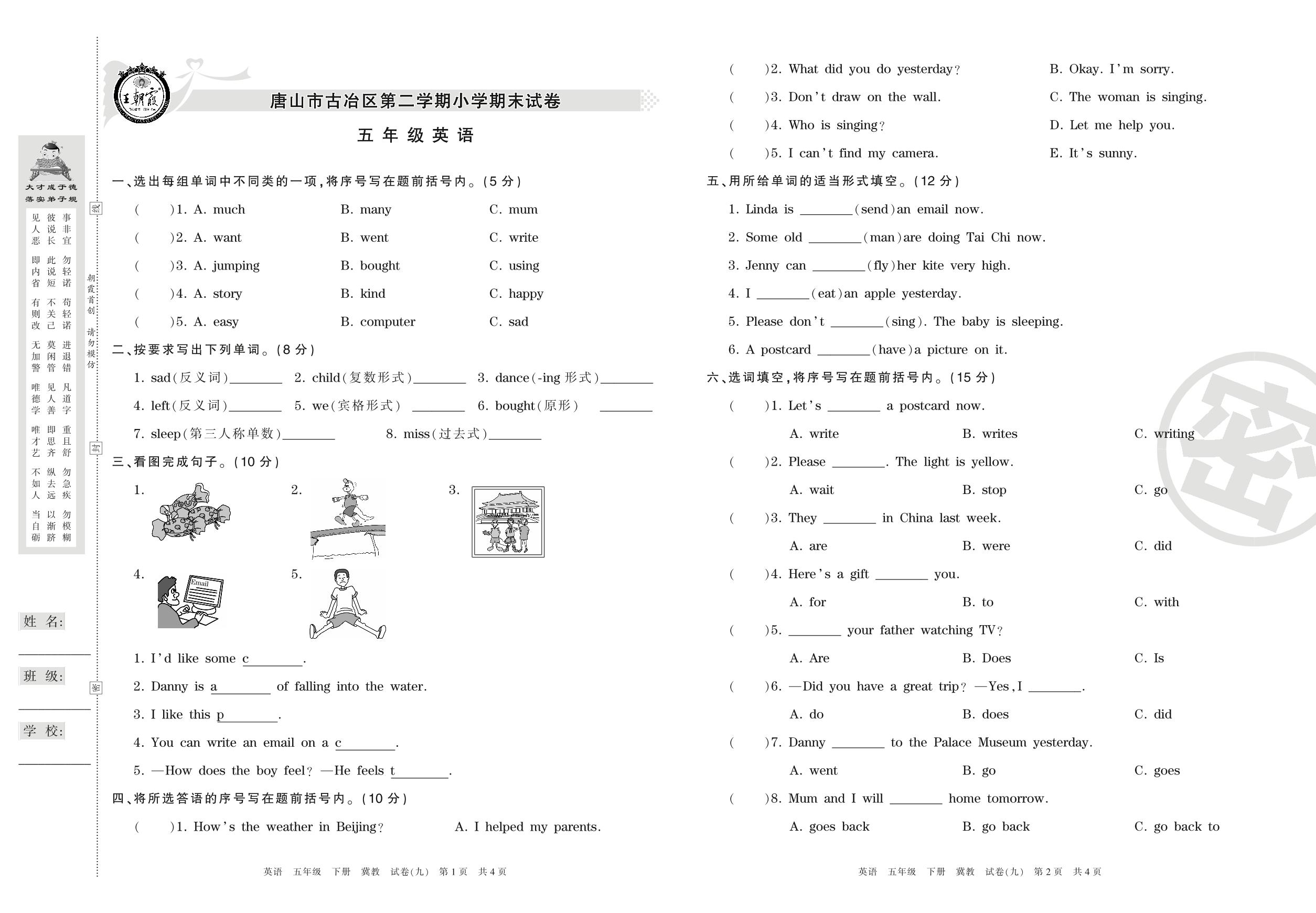 2015-2016学年第二学期唐山市古冶区五年级英语试卷(冀教版)【9】