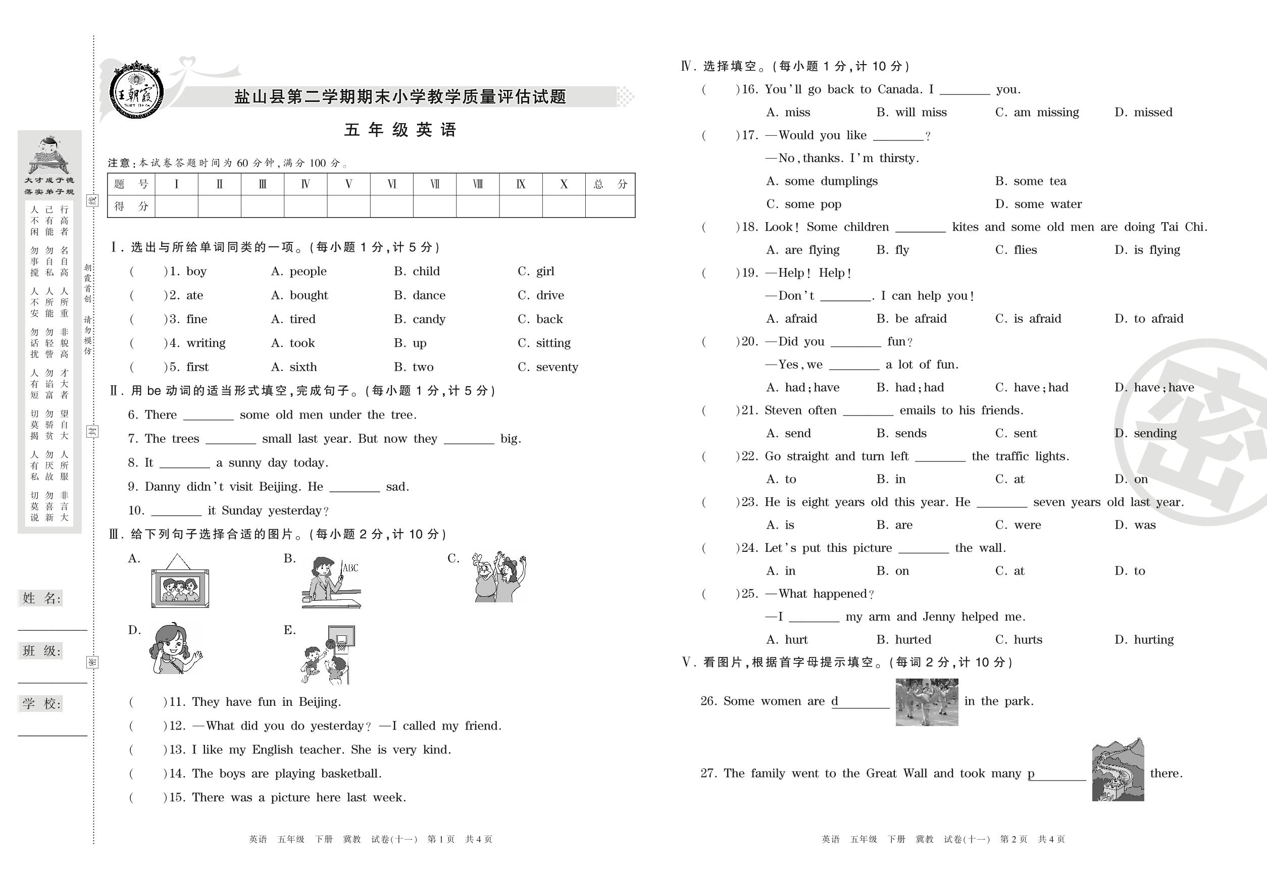 2015-2016学年第二学期沧州市盐山县五年级英语试卷(冀教版)【11】