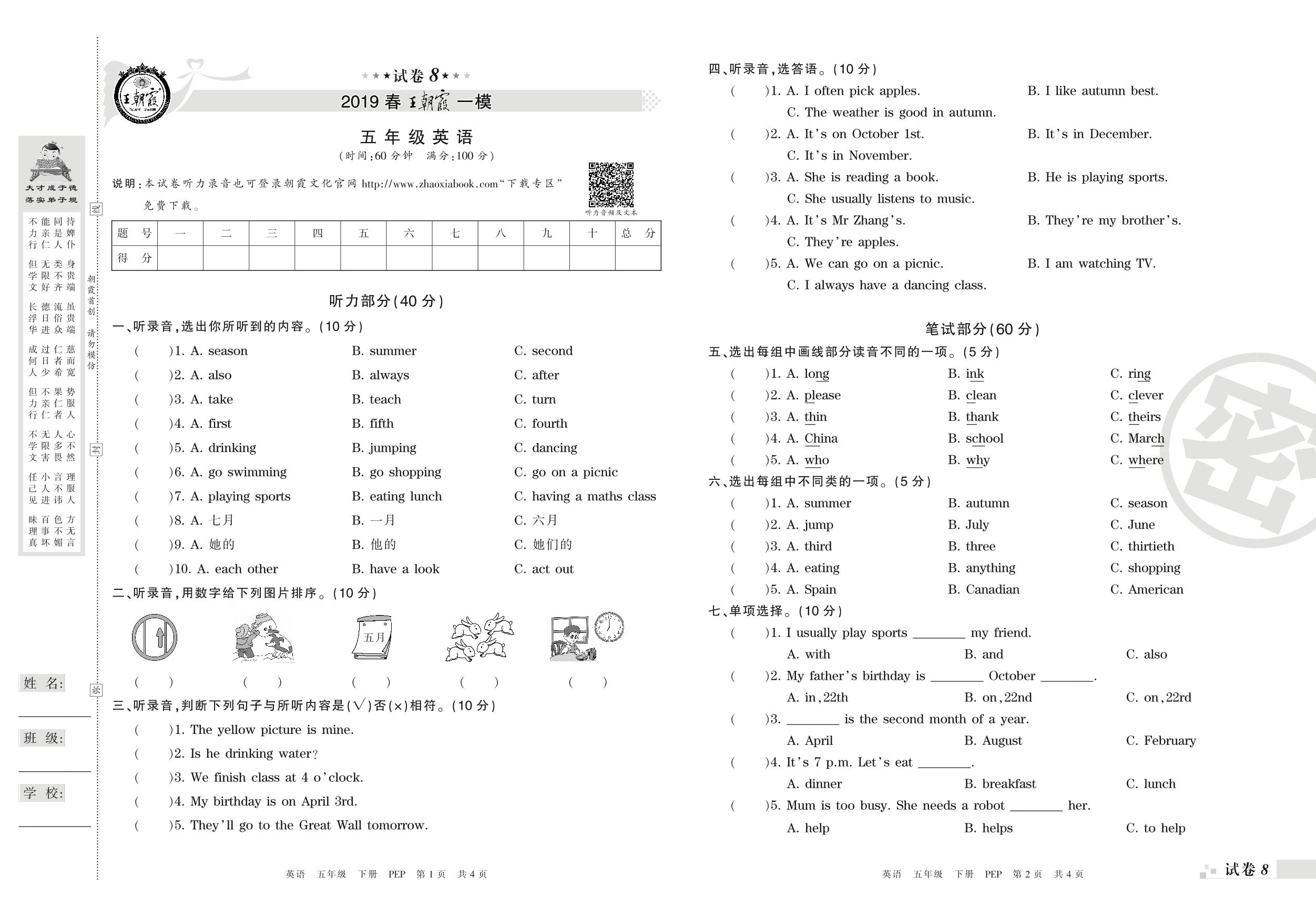 王朝霞期末模拟卷五年级下册英语(PEP版)_R210807145512【8】