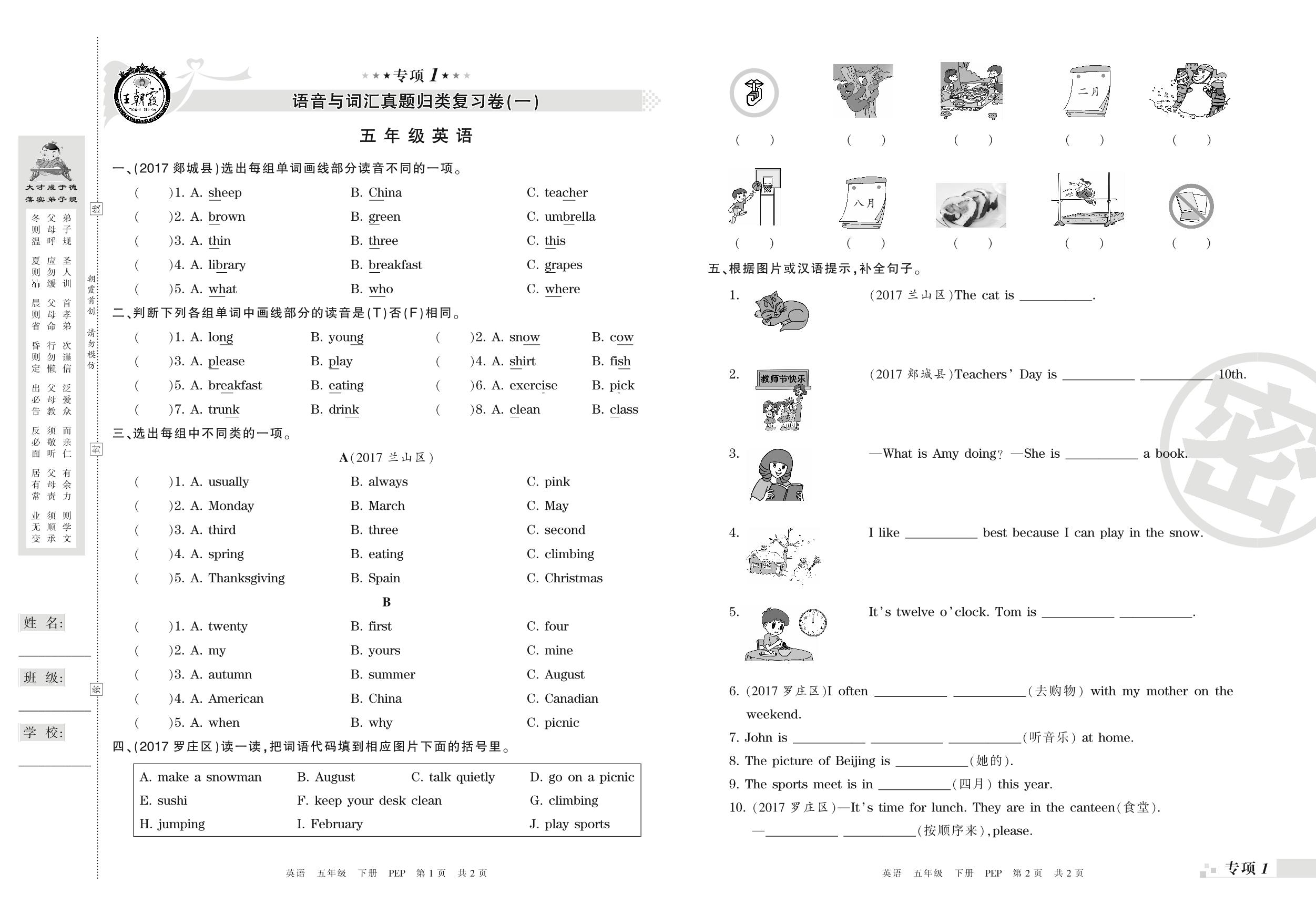 王朝霞期末专项卷——语音与词汇(一)(二)真题归类复习卷五年级下册英语(PEP版)_R210807145808【0】