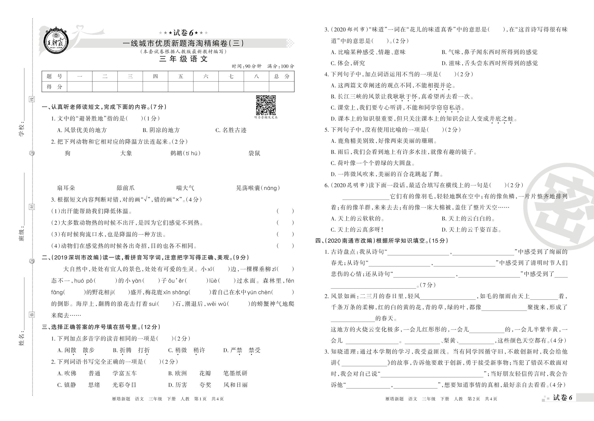 三年级语文人教版下册期末卷