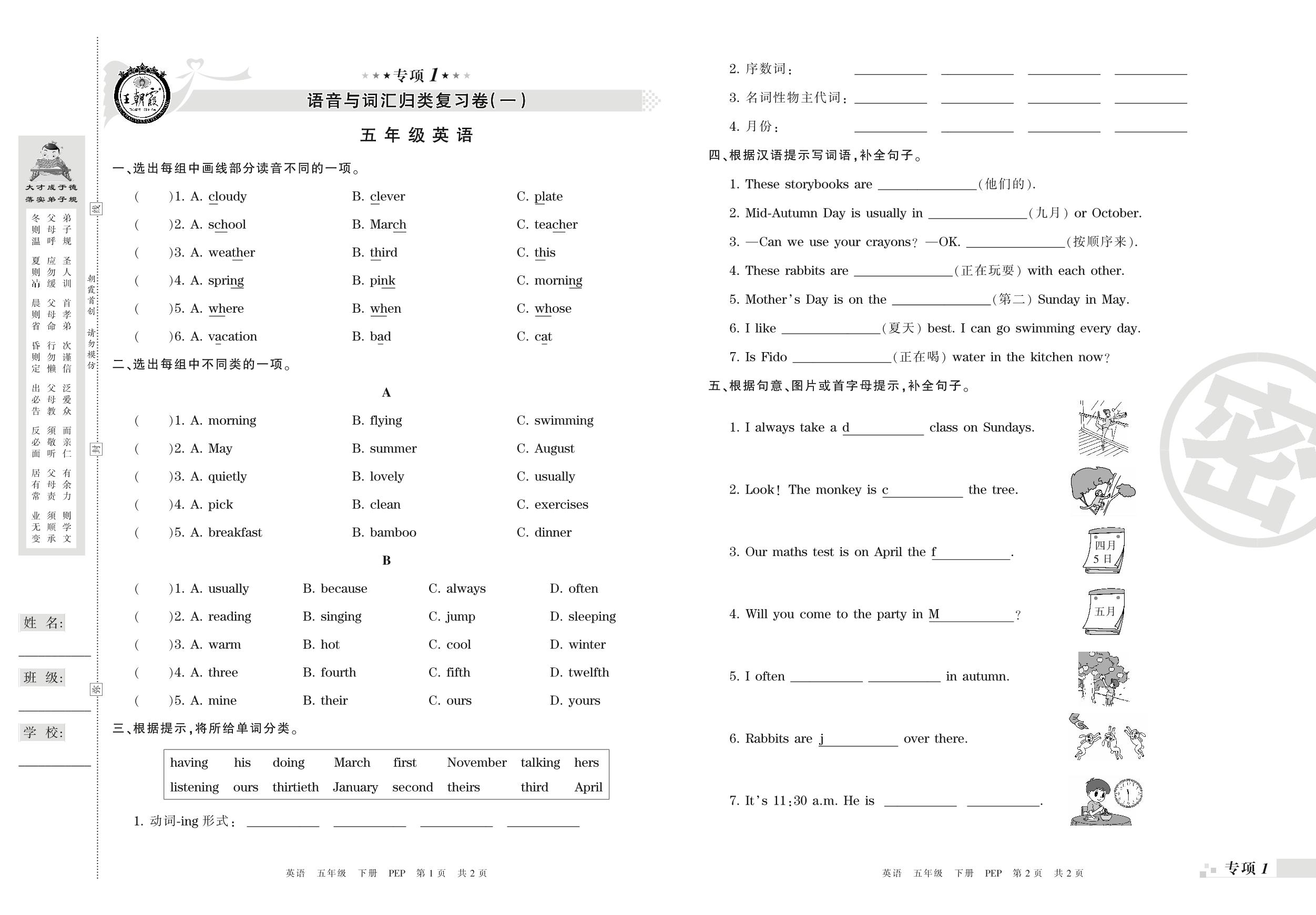 王朝霞期末专项卷——语音与词汇(一)(二)真题归类复习卷五年级下册英语(PEP版)_R210807145919【0】