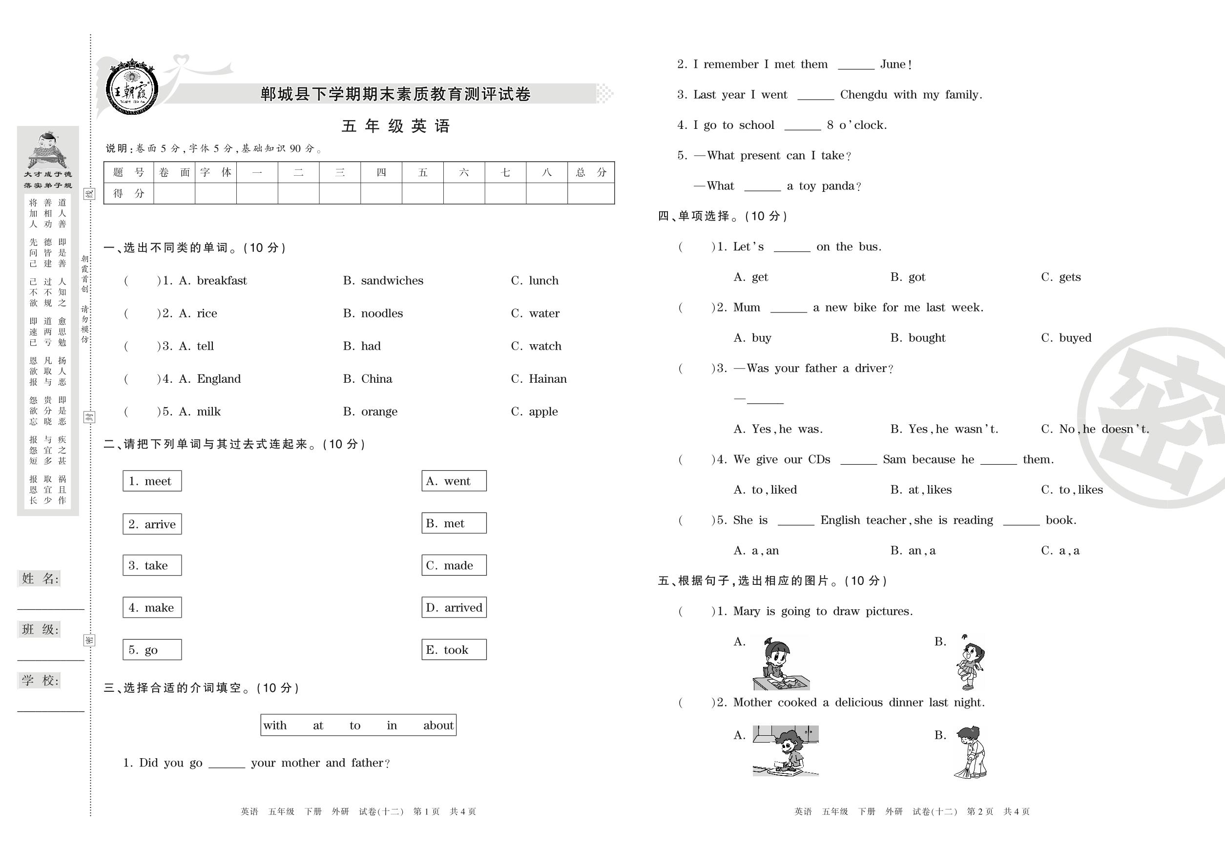 2015-2016学年第二学期周口市郸城县五年级英语试卷(外研版)【12】
