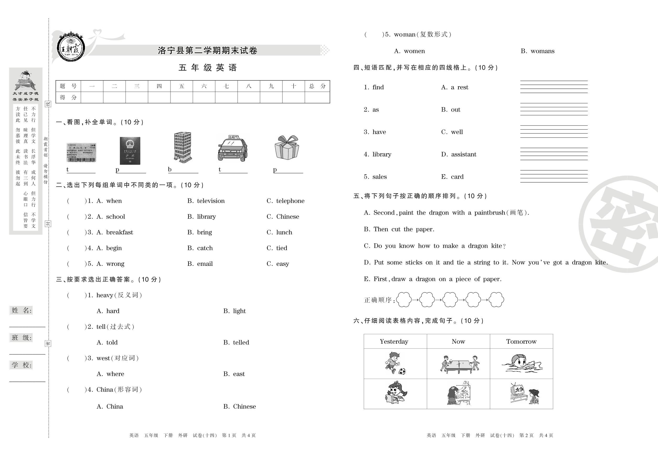 2015-2016学年第二学期洛阳市洛宁县五年级英语试卷(外研版)【14】