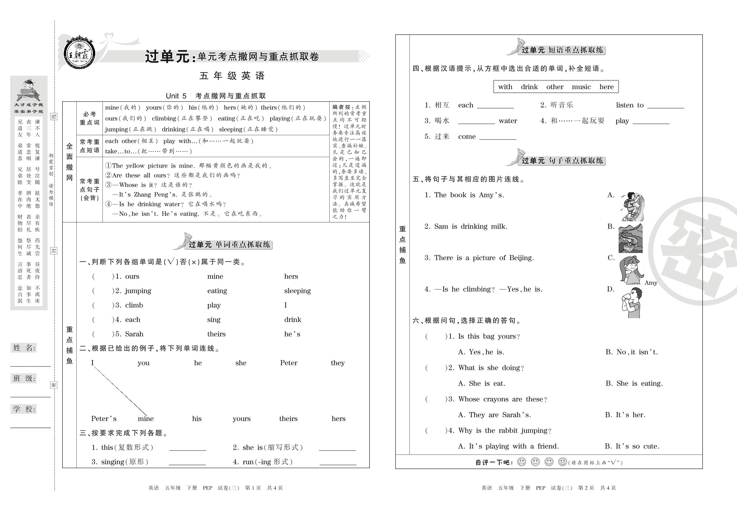 王朝霞期末过单元五年级下册英语(PEP版)【3】