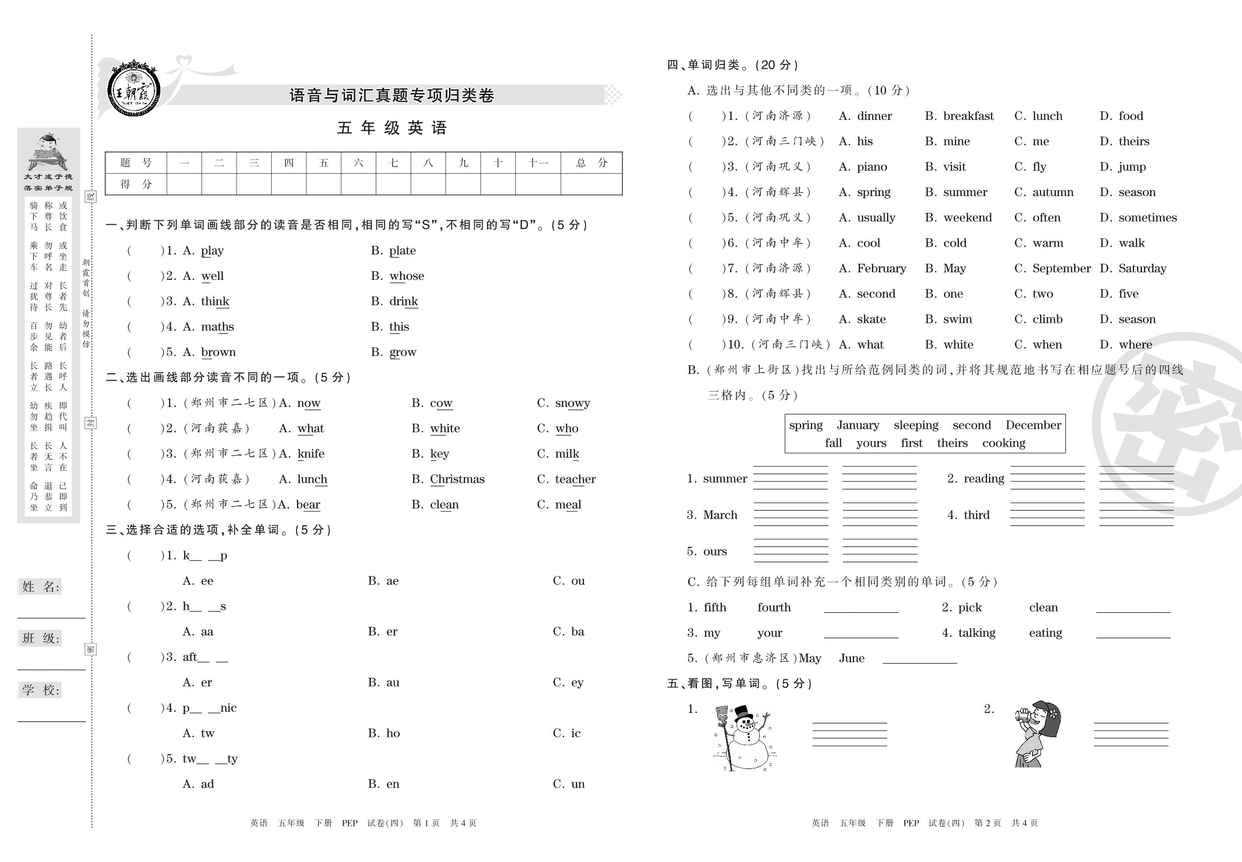 王朝霞期末专项卷五年级下册英语(PEP版)_R210807150221【4】