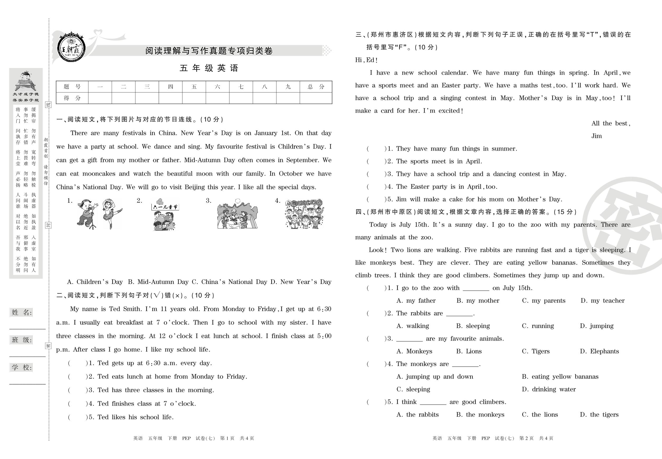 王朝霞期末专项卷五年级下册英语(PEP版)【7】