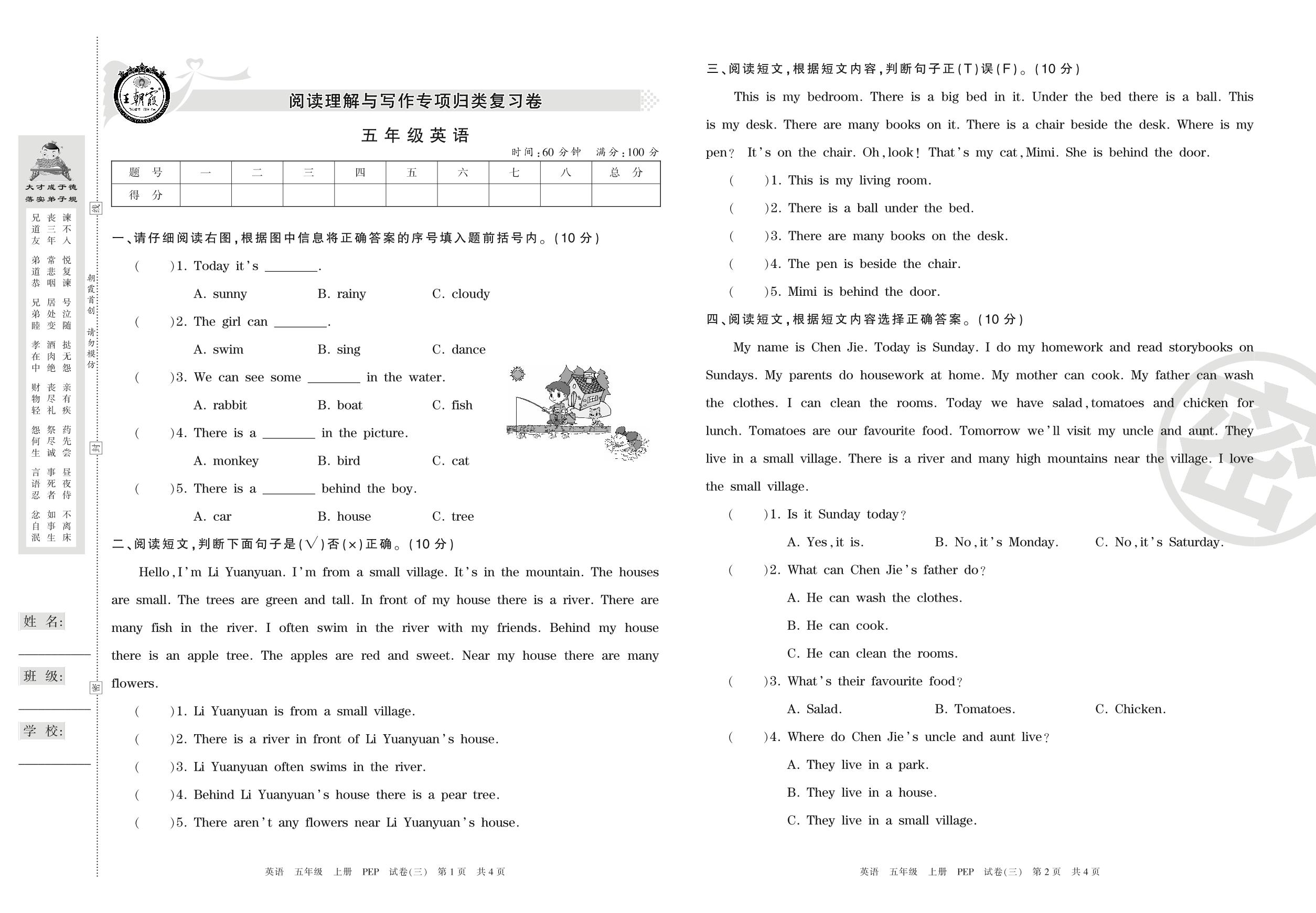 王朝霞期末专项卷五年级上册英语(PEP版)_R210807150632【3】
