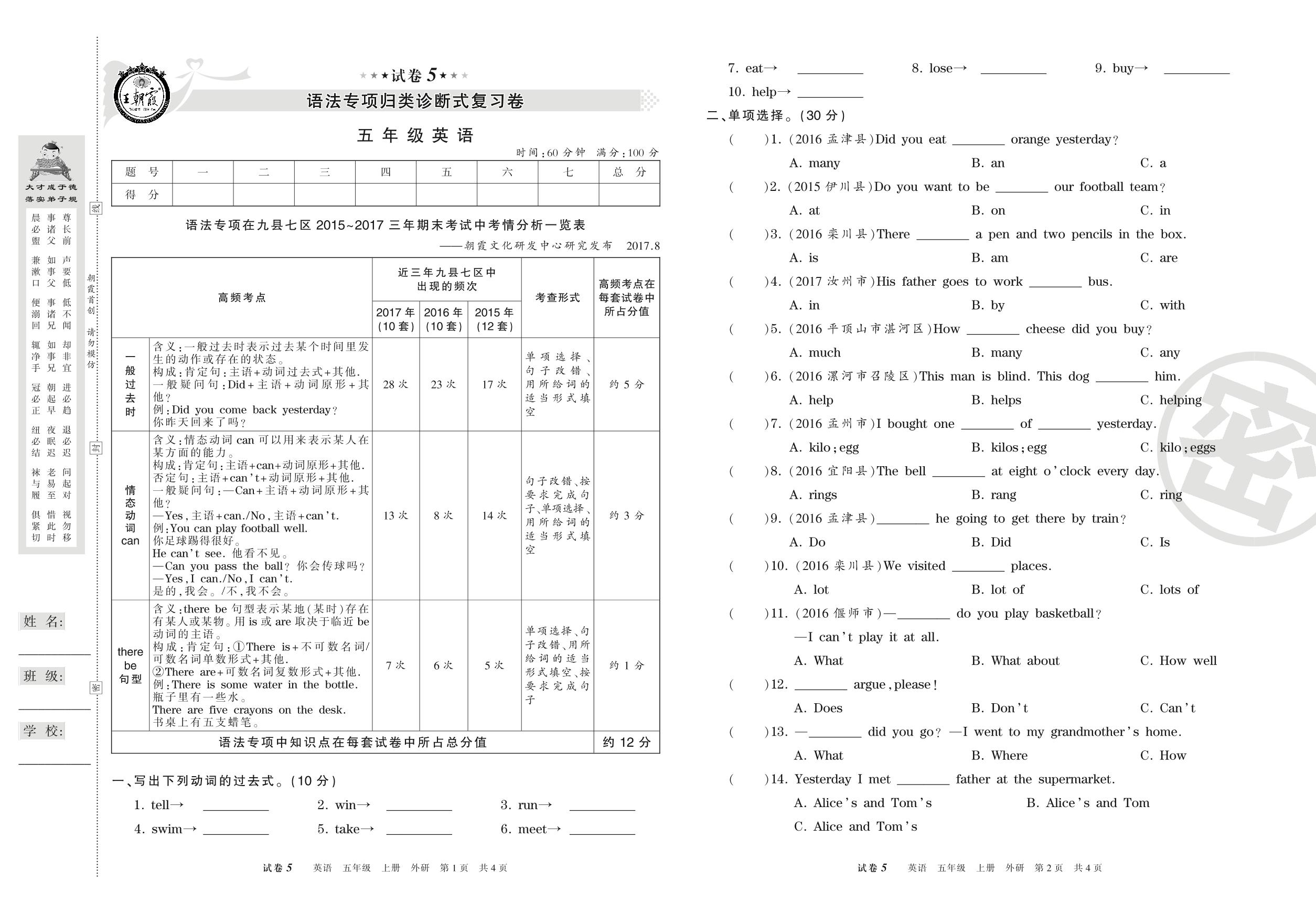 王朝霞期末专项卷五年级上册英语(外研版)【5】