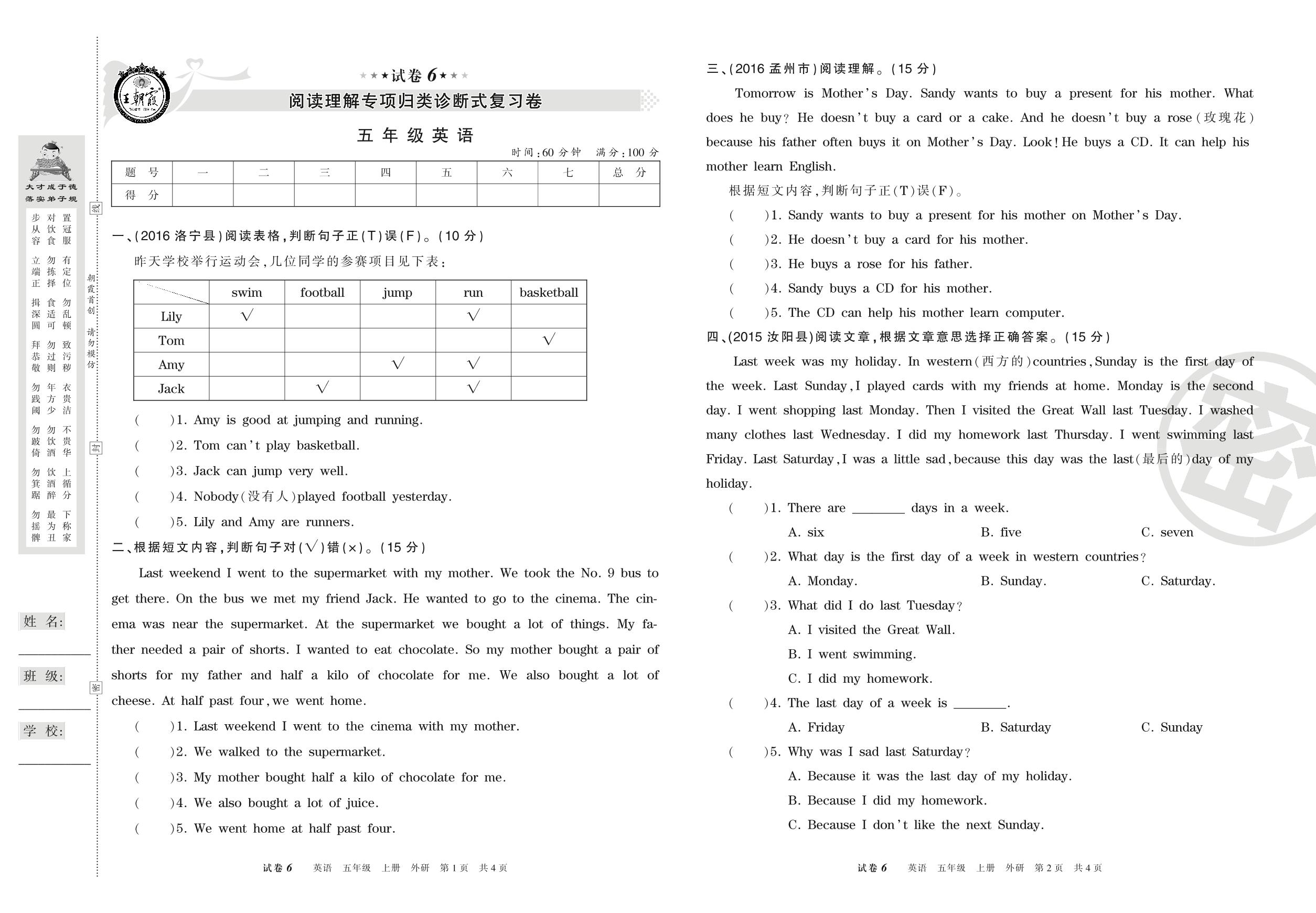 王朝霞期末专项卷五年级上册英语(外研版)【6】
