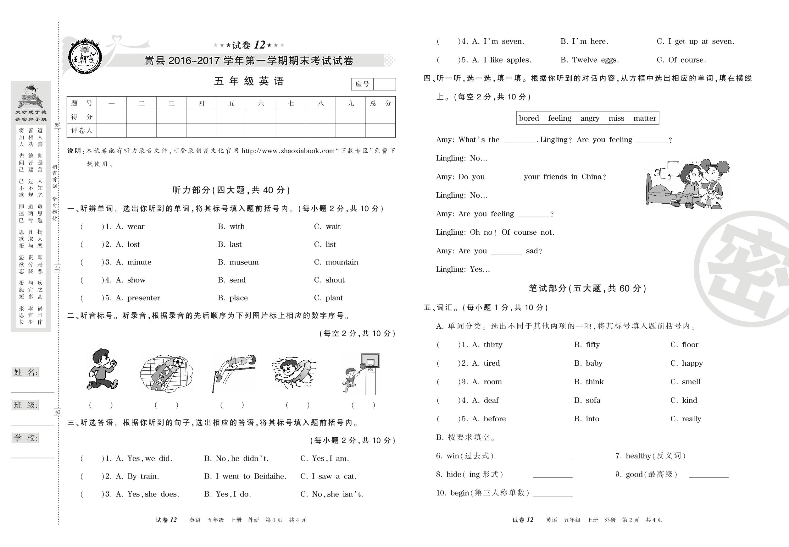 2016-2017学年第一学期洛阳市嵩县五年级英语试卷(外研版)【12】