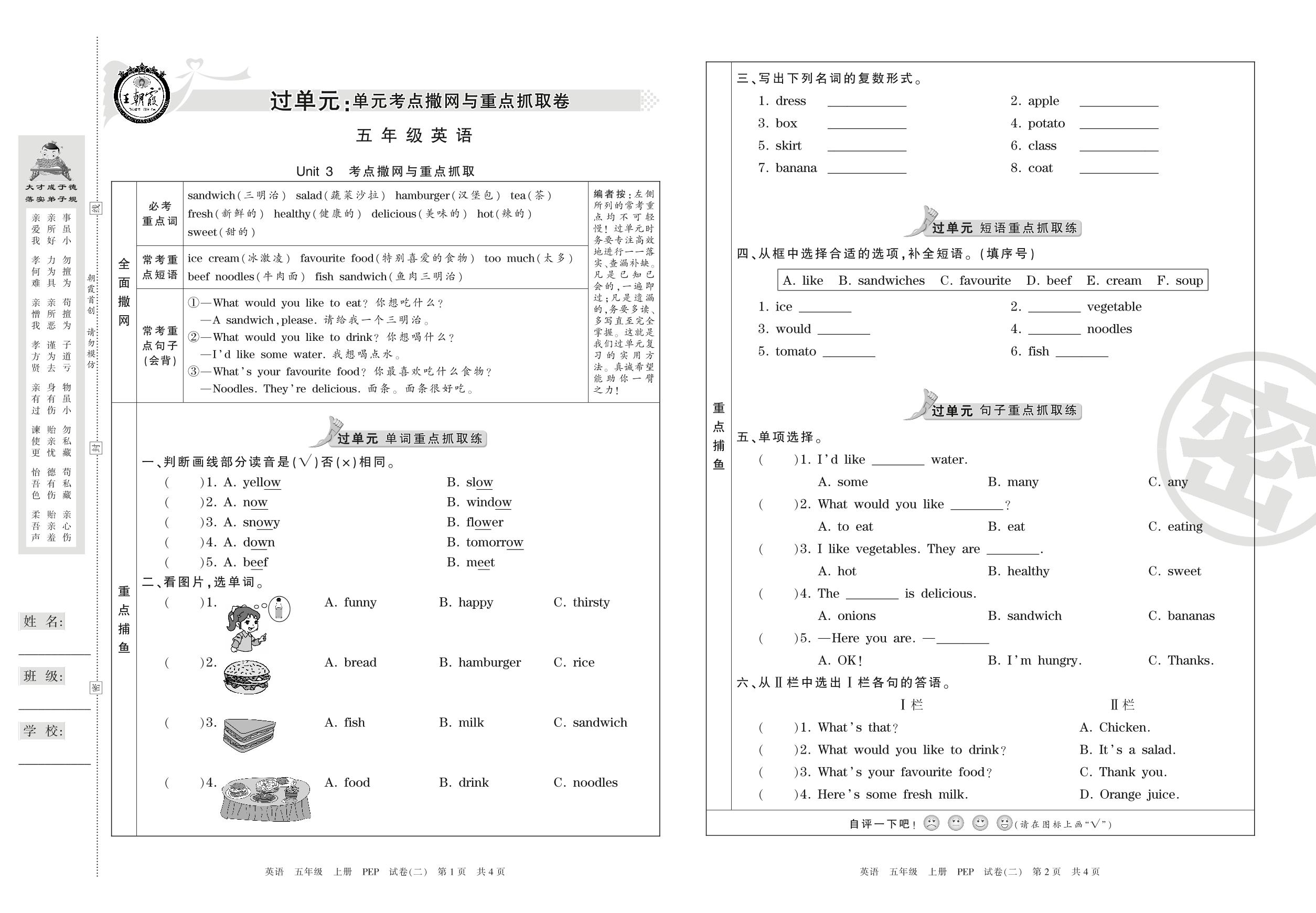 王朝霞期末过单元五年级上册英语(PEP版)【2】