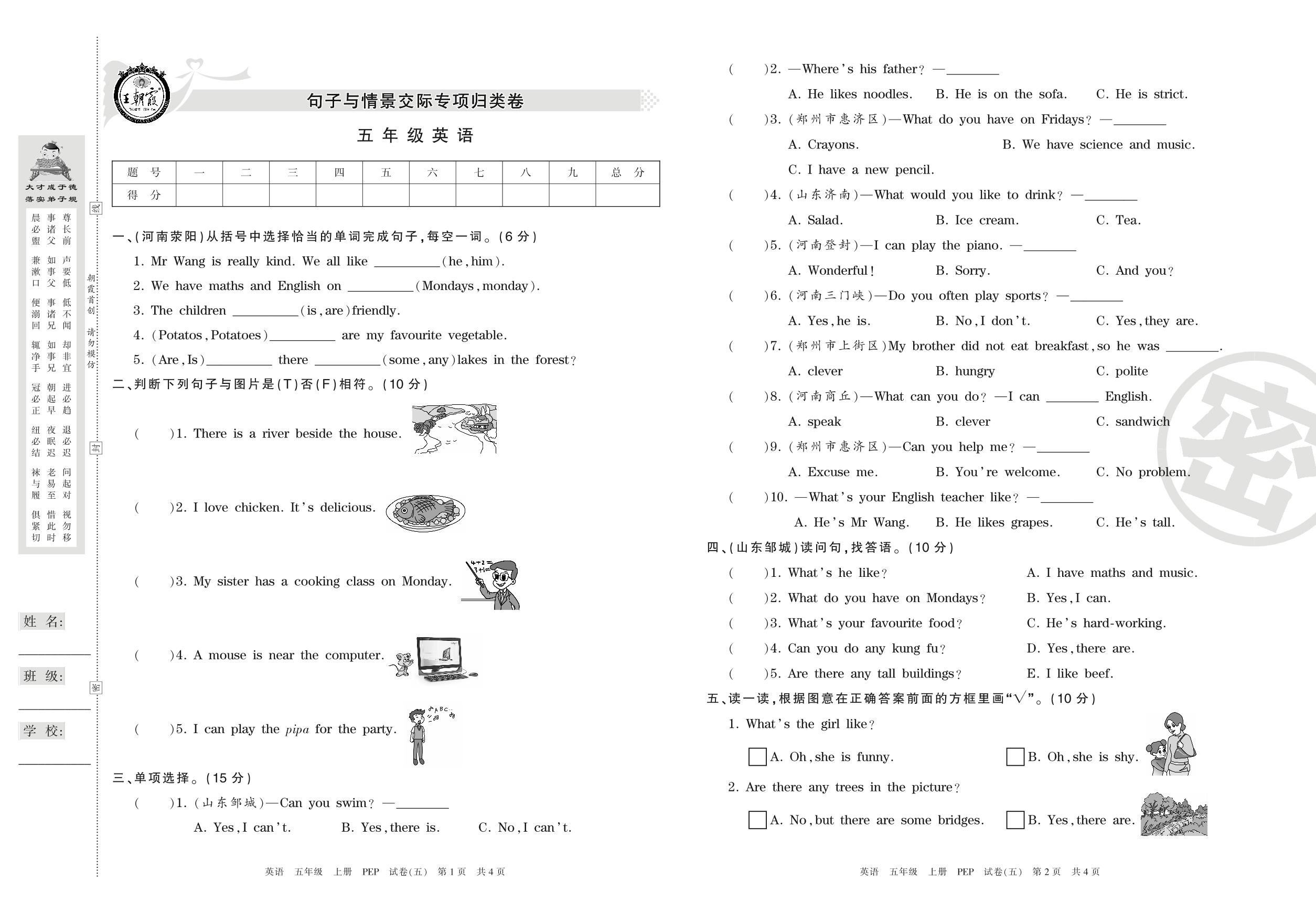 王朝霞期末专项卷五年级上册英语(PEP版)【5】