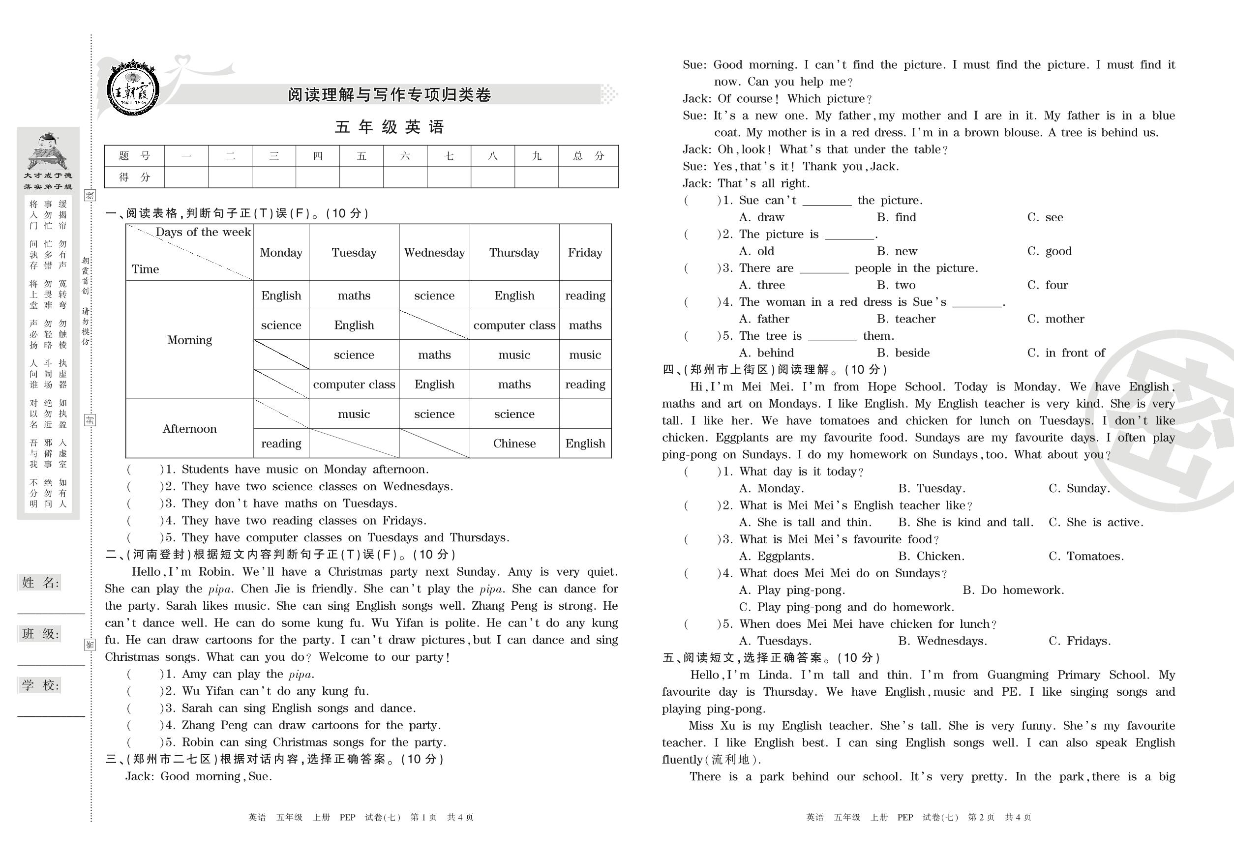 王朝霞期末专项卷五年级上册英语(PEP版)【7】