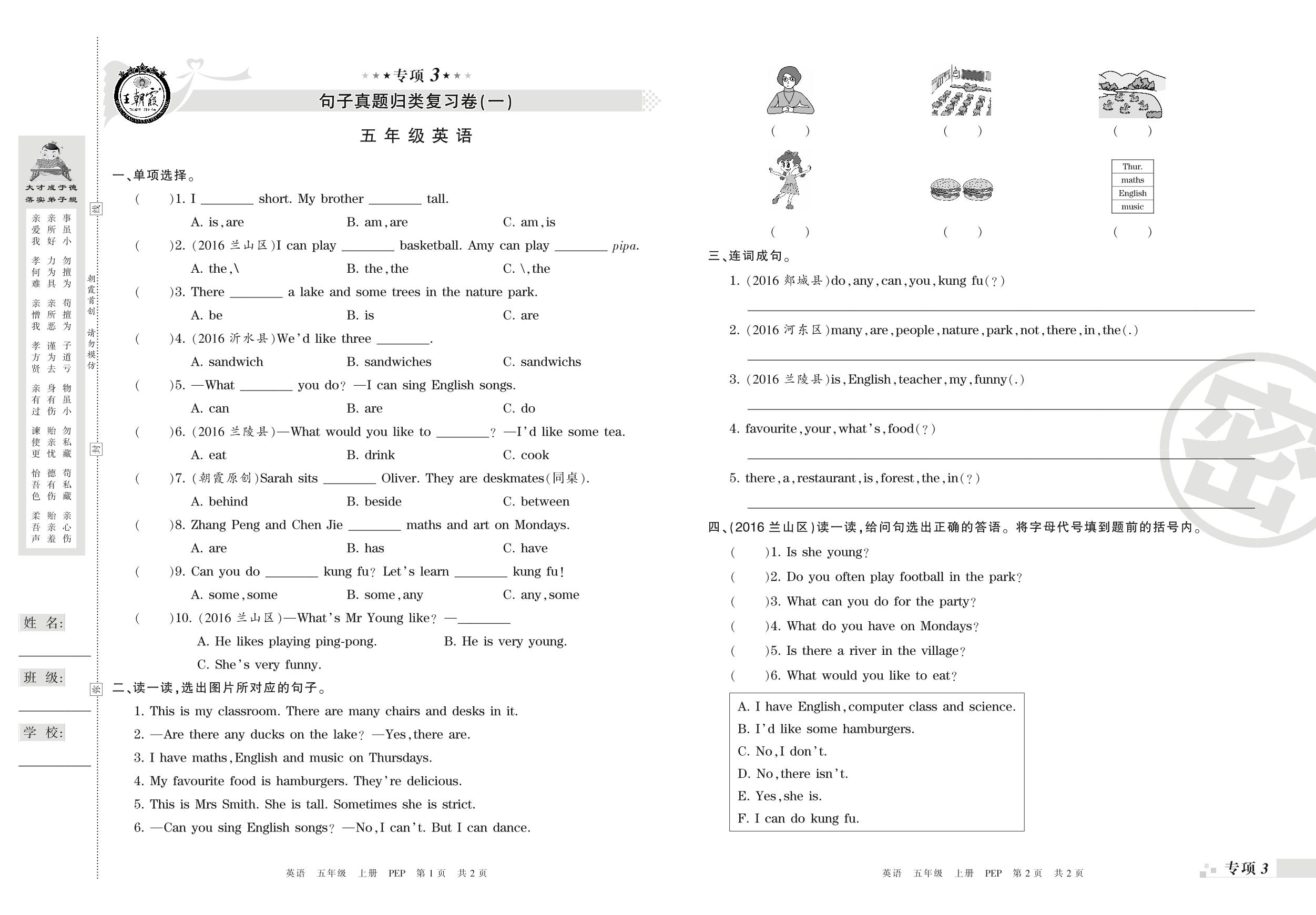 王朝霞期末专项卷——句子真题归类复习五年级上册英语(PEP版)_R210807151217【0】