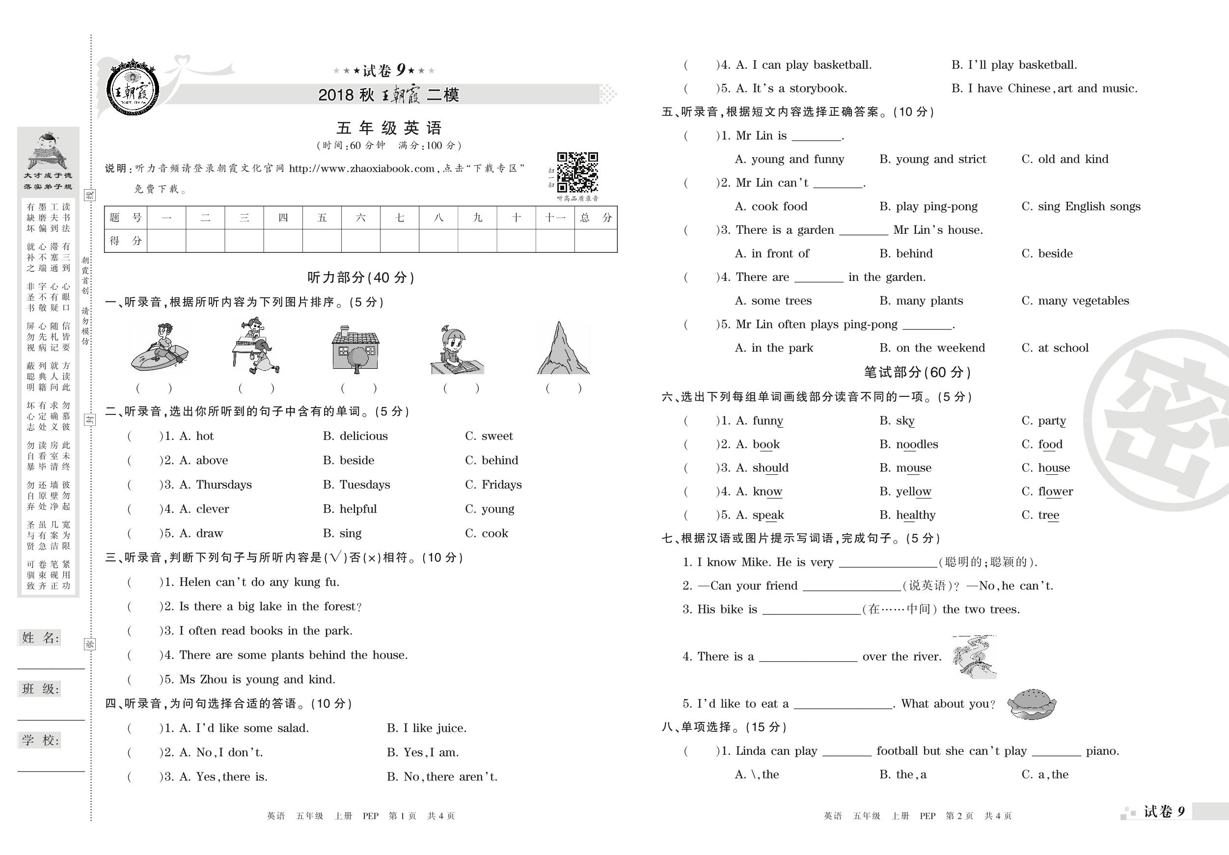 王朝霞期末模拟卷五年级上册英语(PEP版)_R210807151427【9】