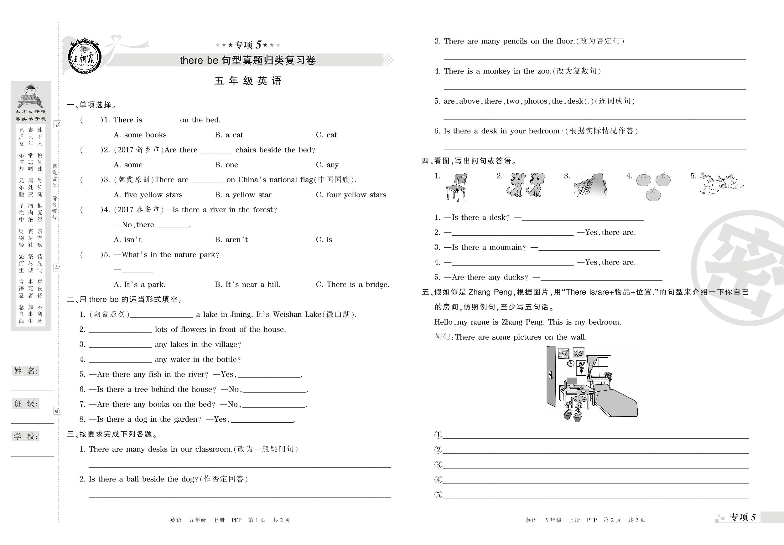 王朝霞期末专项卷——there be句型、情景交际真题归类复习五年级上册英语(PEP版)【0】