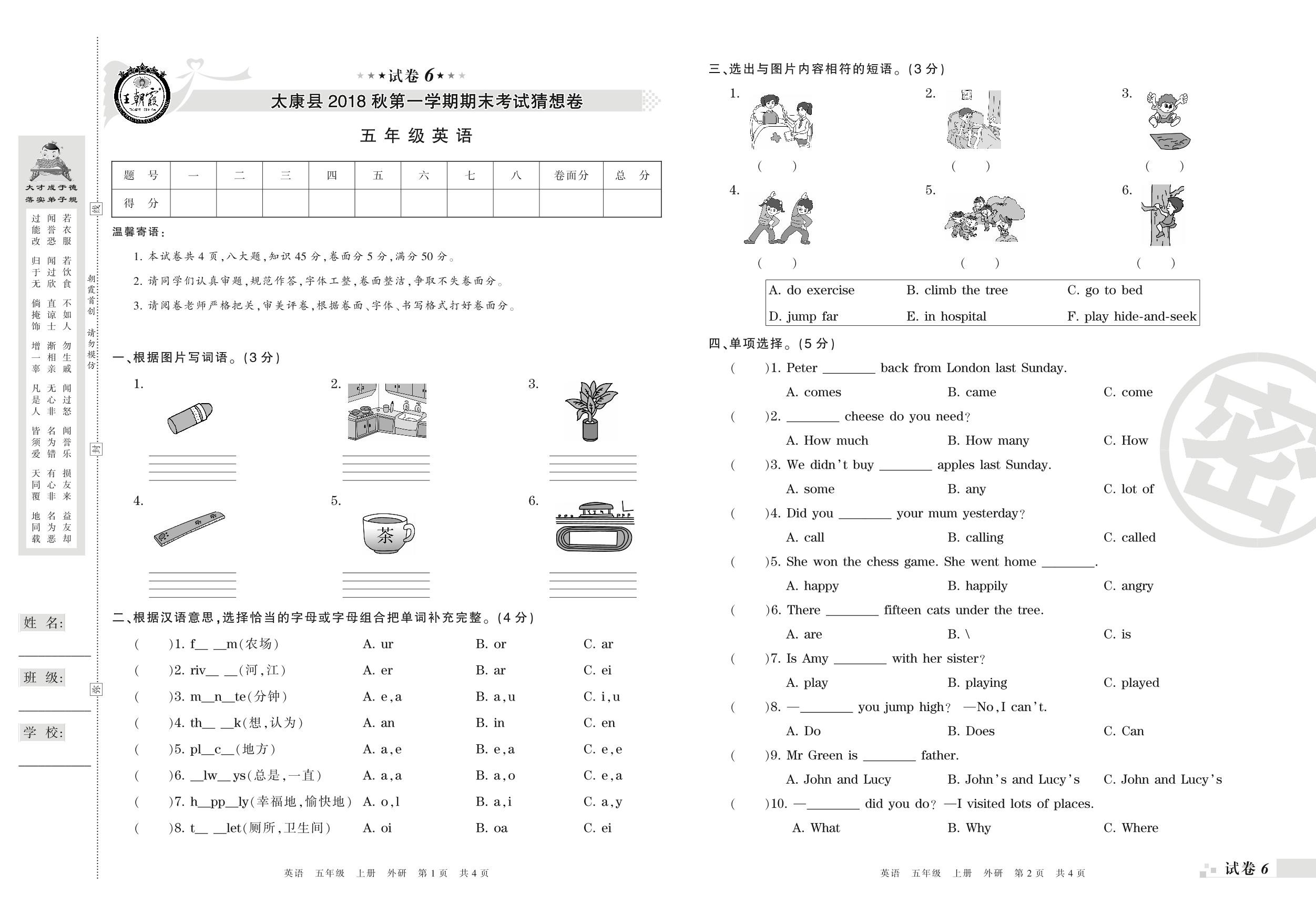 2017-2018学年第一学期周口市太康县五年级英语试卷(外研版)【6】