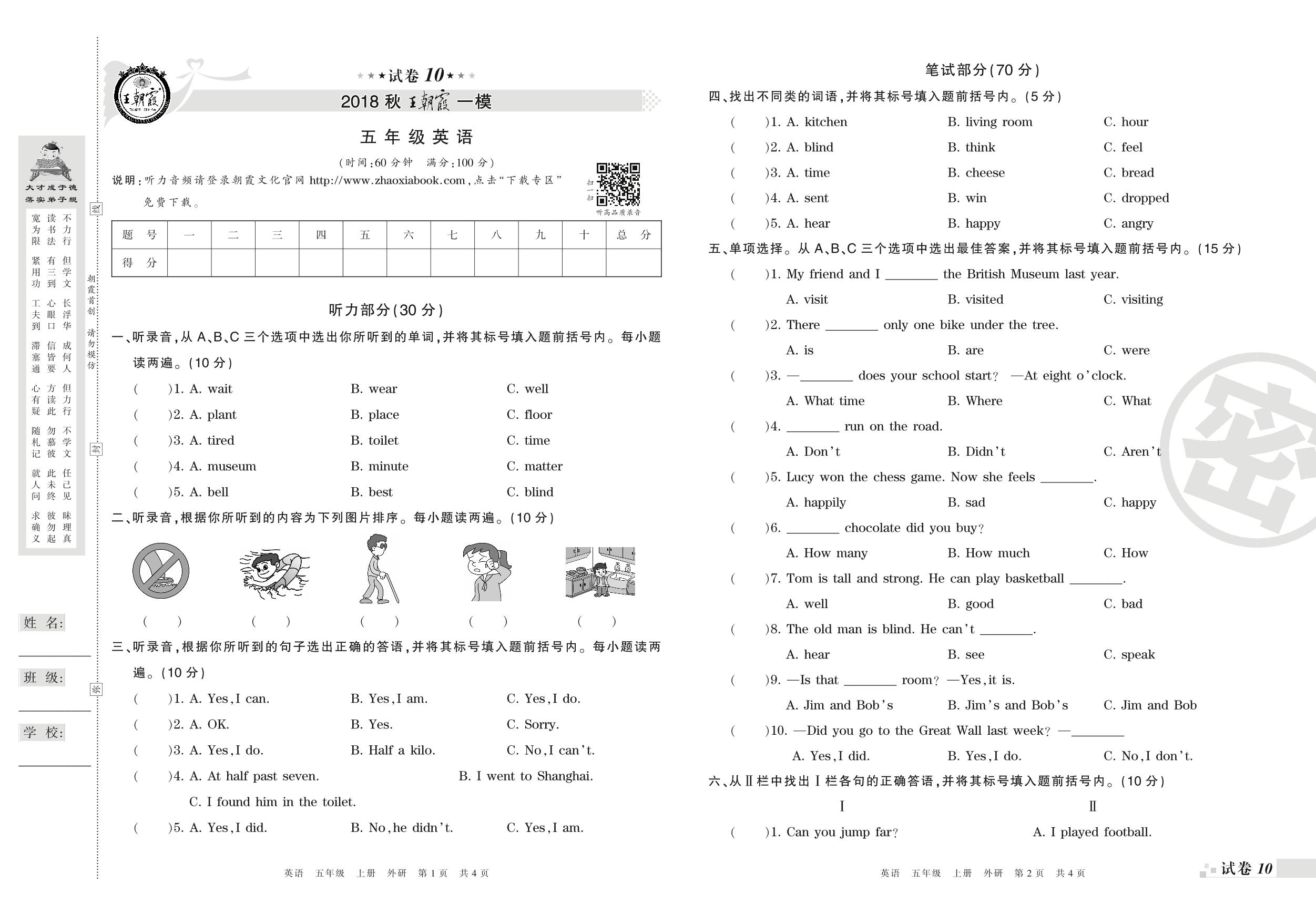 王朝霞期末模拟卷五年级上册英语(外研版)_R210807151715【10】