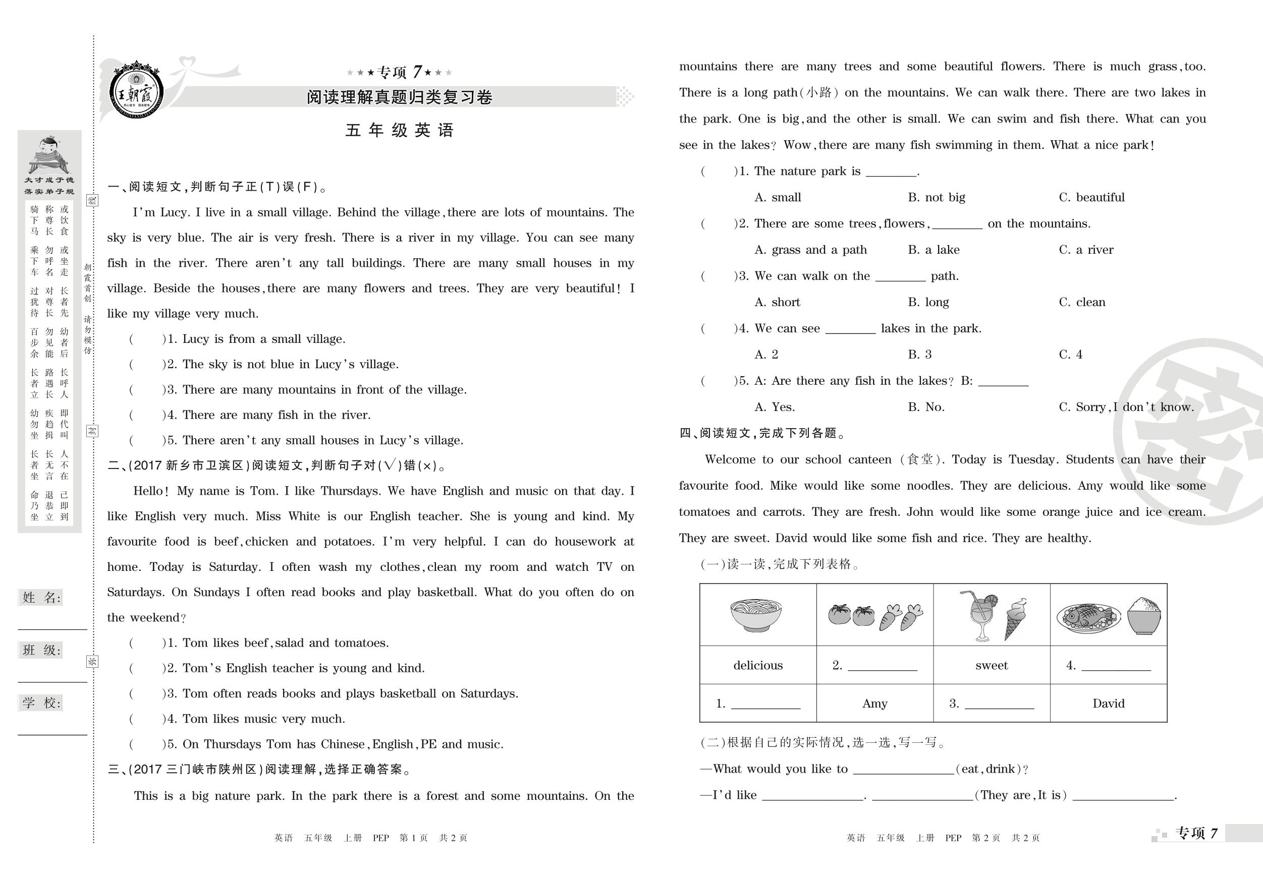 王朝霞期末专项卷——阅读理解、写作真题归类复习五年级上册英语(PEP版)_R210807151959【0】