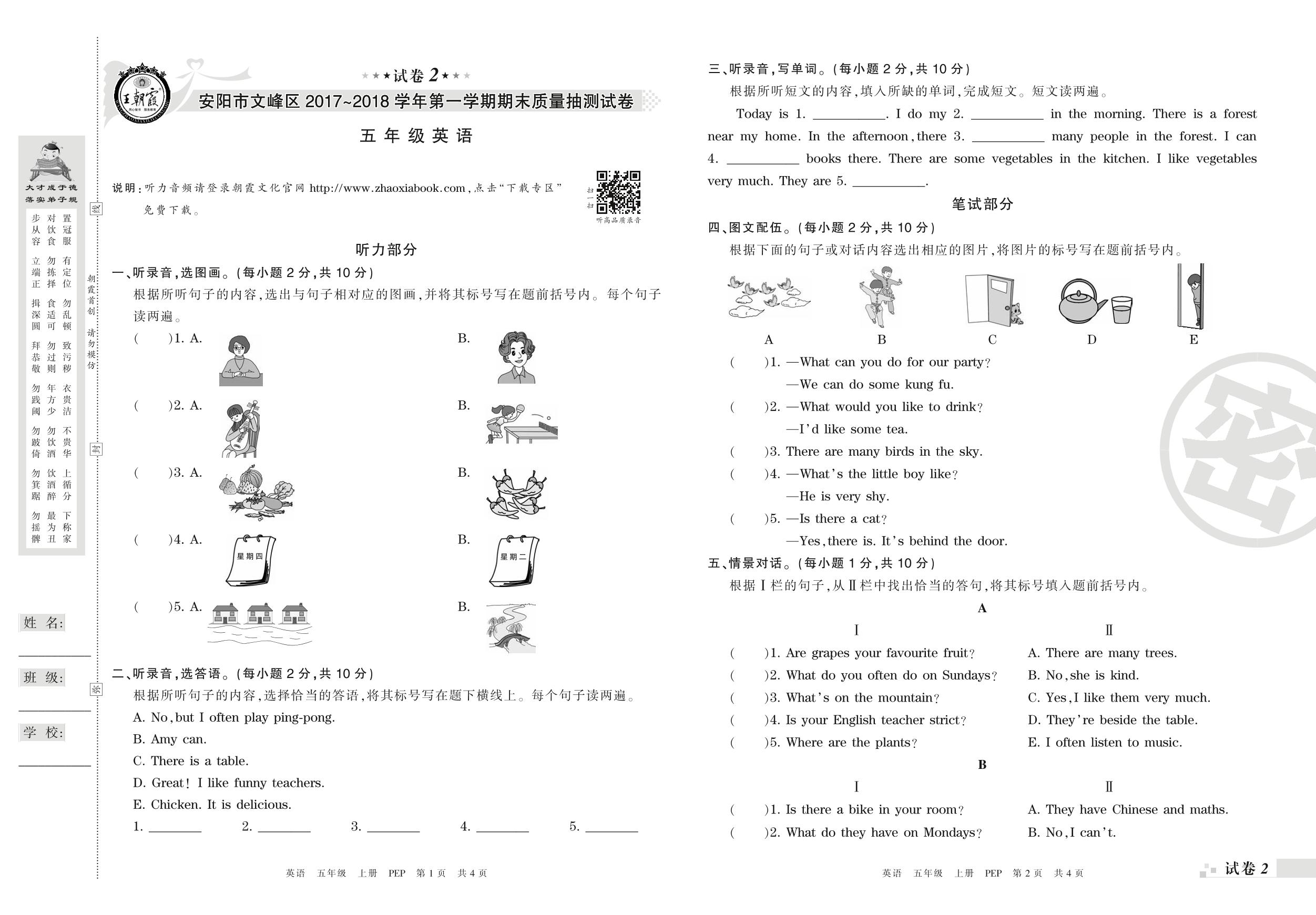 2017-2018学年第一学期安阳市文峰区五年级英语试卷(PEP版)_R210807152004【2】