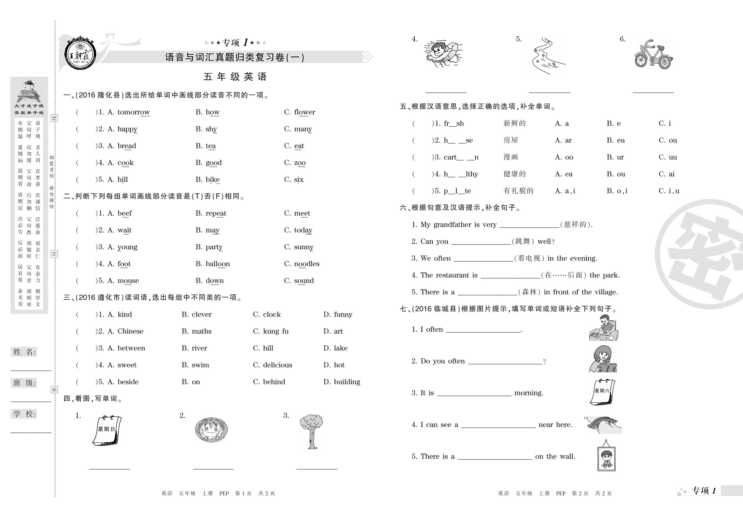 王朝霞期末专项卷——语音与词汇真题归类复习五年级上册英语(PEP版)_R210807152155【0】