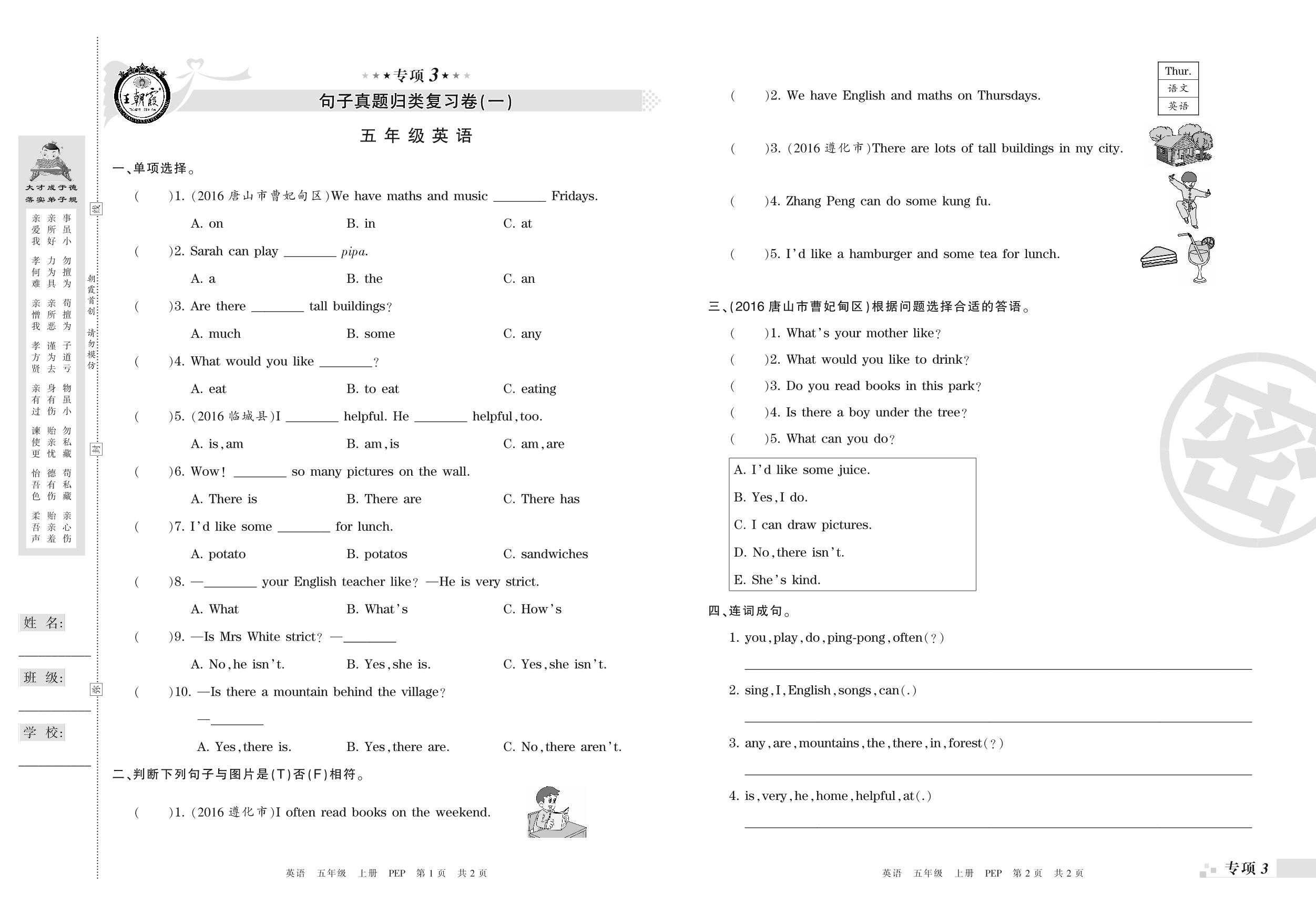 王朝霞期末专项卷——句子真题归类复习五年级上册英语(PEP版)_R210807152159【0】