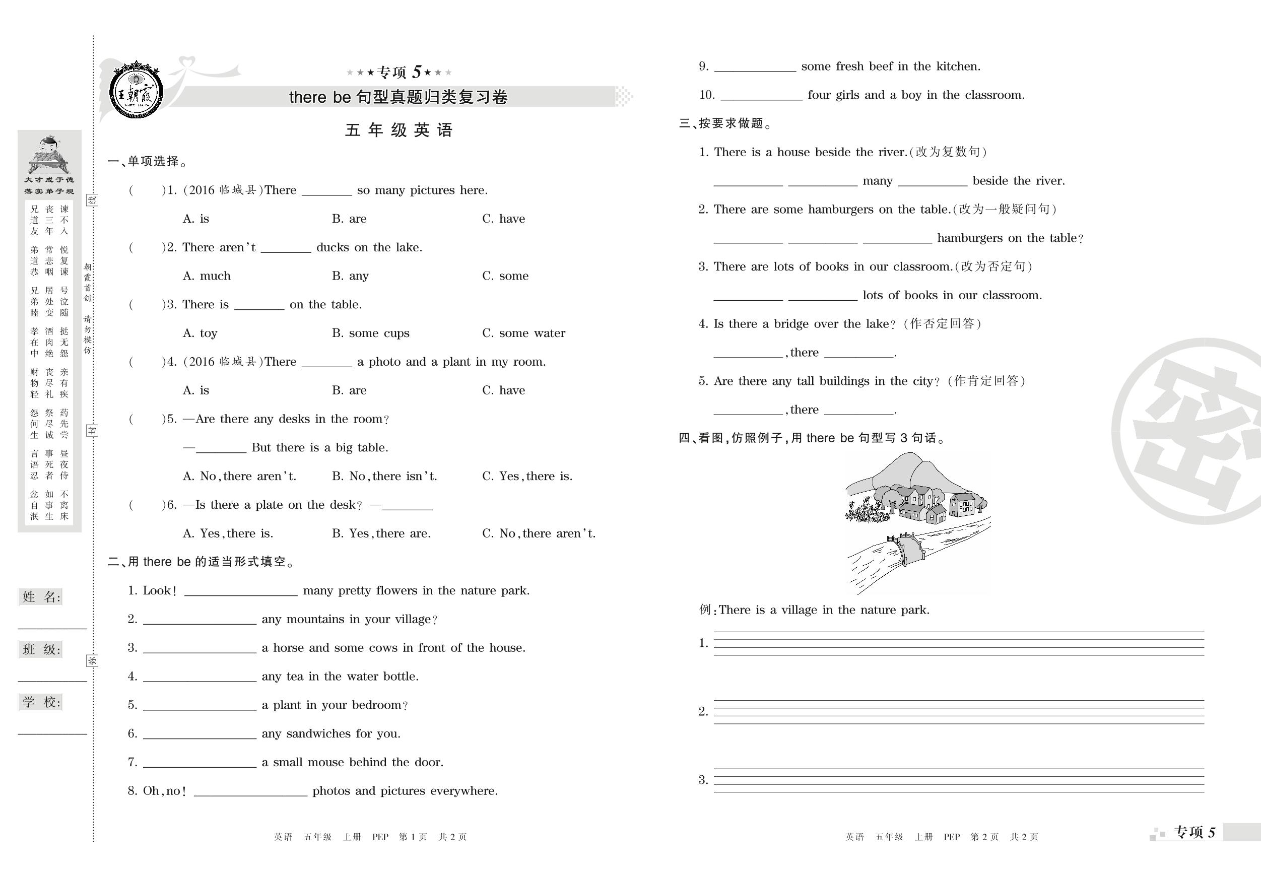 王朝霞期末专项卷——there be 句型、情景交际真题归类复习五年级上册英语(PEP版)_R210807152203【0】