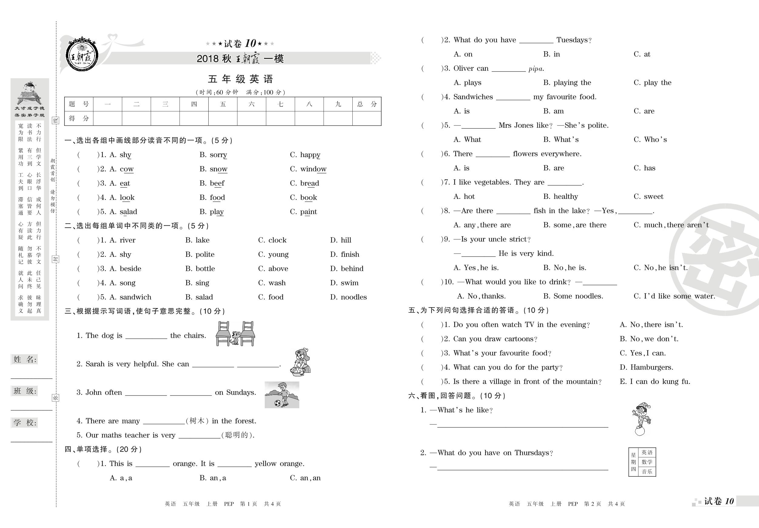 王朝霞期末模拟卷五年级上册英语(PEP版)_R210807152254【10】