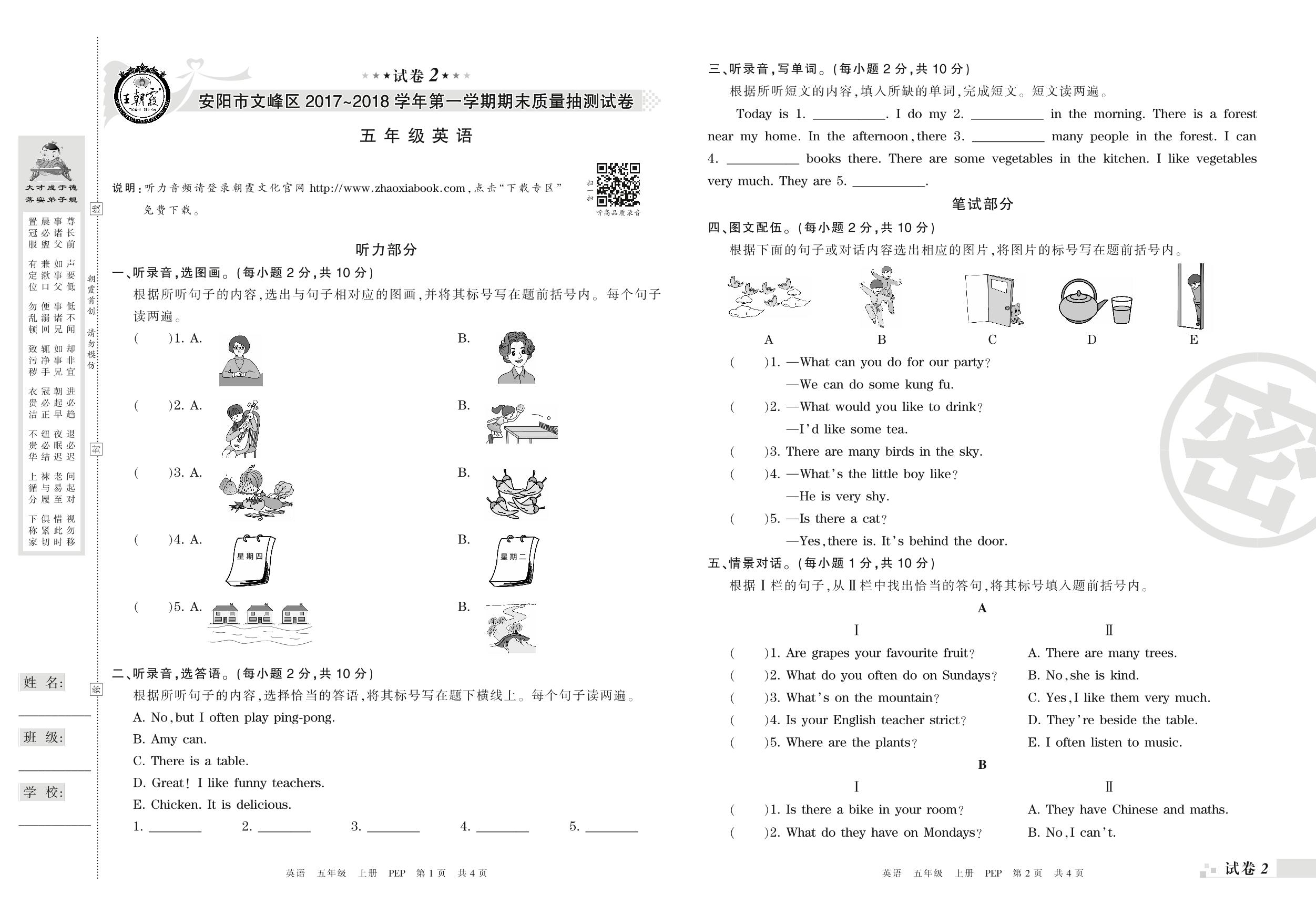 2017-2018学年第一学期安阳市文峰区五年级英语试卷(PEP版)_R210807152446【2】