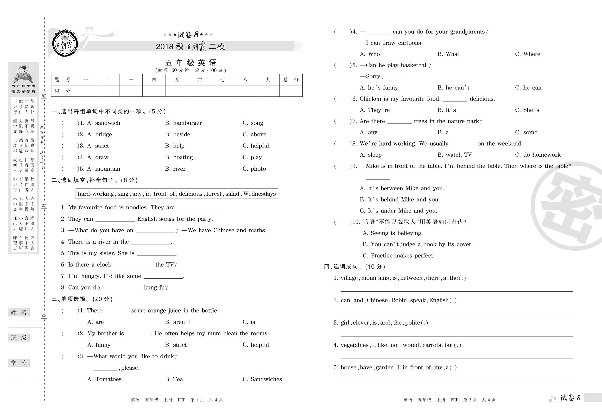 王朝霞期末模拟卷五年级上册英语(PEP版)_R210807152507【8】